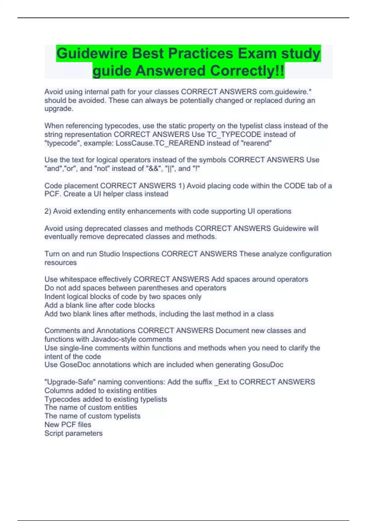 Guidewire Best Practices Exam study guide Answered Correctly!!