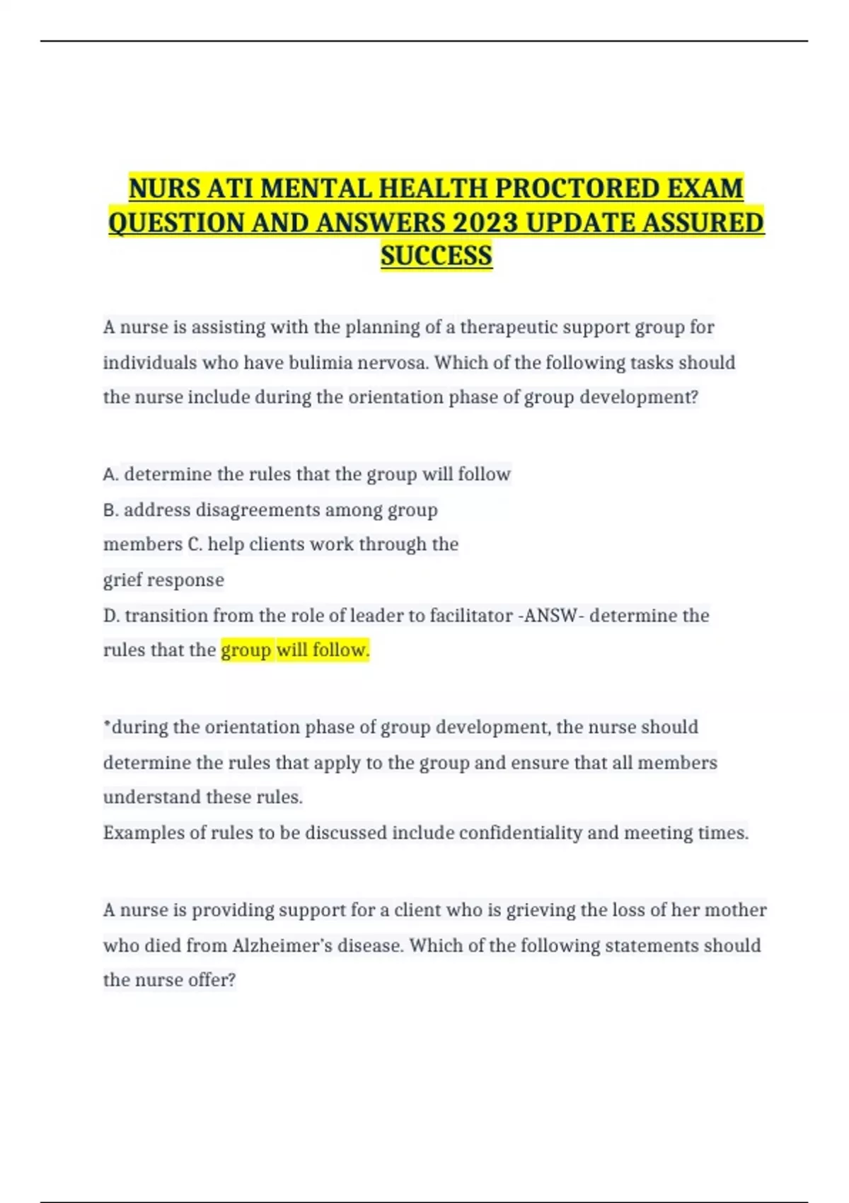 NURS ATI MENTAL HEALTH PROCTORED EXAM QUESTION AND ANSWERS 2023 UPDATE ASSURED SUCCESS