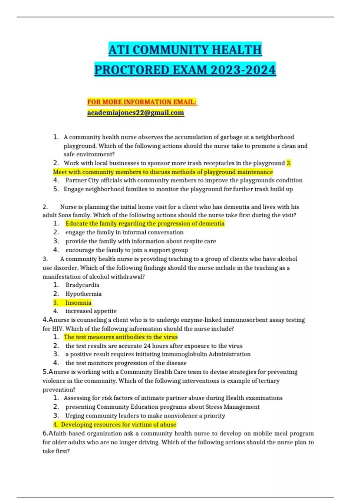 ATI COMMUNITY HEALTH PROCTORED EXAM