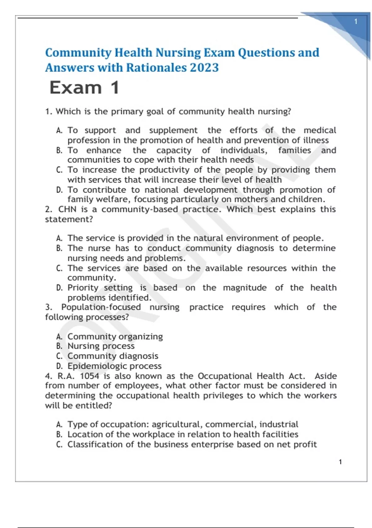 Community Health Nursing Exam Questions and Answers with Rationales 2023