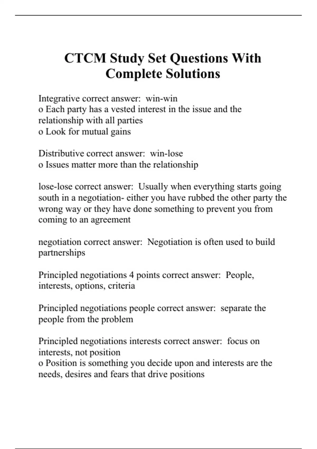 CTCM Study Set Questions With Complete Solutions