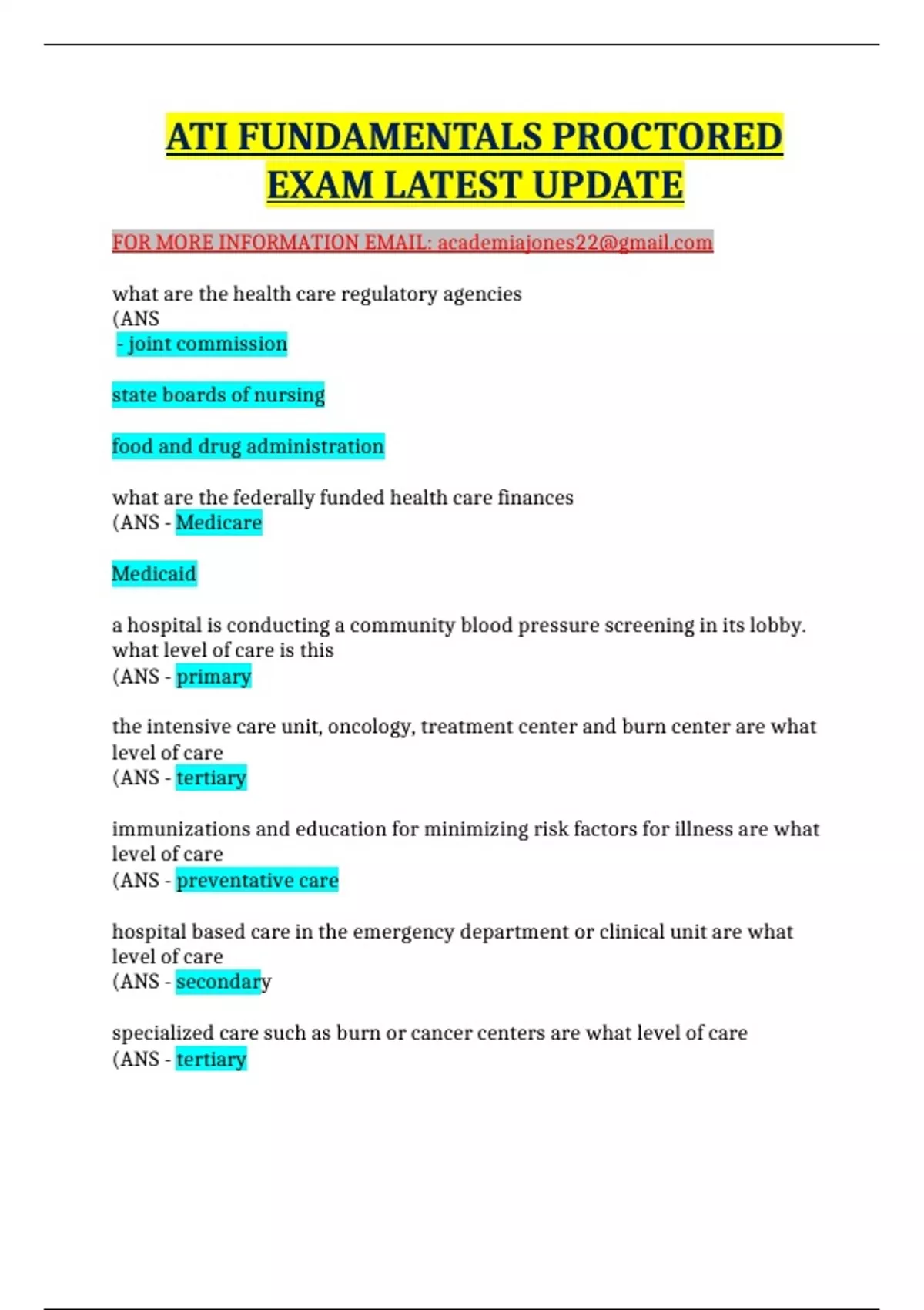 ATI FUNDAMENTALS PROCTORED EXAM LATEST