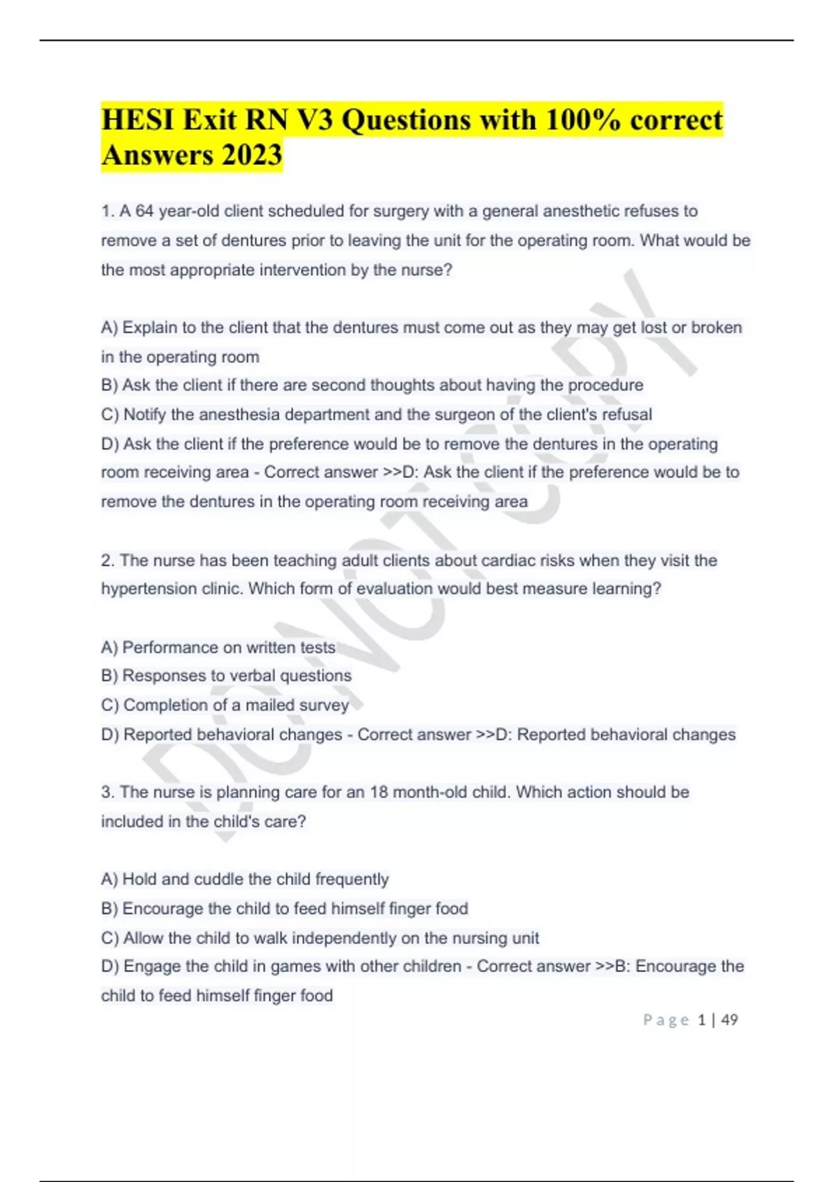HESI Exit RN V3 Questions with 100% correct Answers 2023HESI Exit RN V3 Questions with 100% correct Answers 2023HESI Exit RN V3 Questions with 100% correct Answers 2023