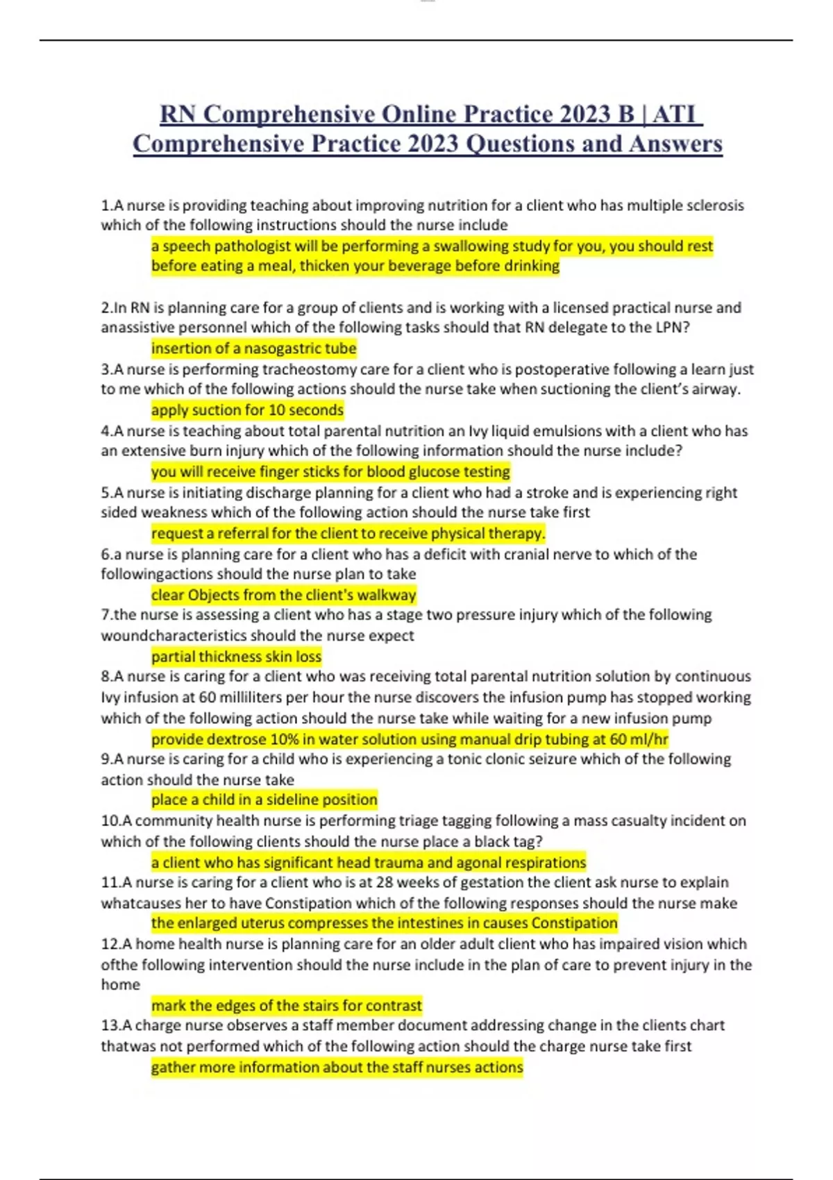 - RN Comprehensive Online Practice 2023 B | ATI Comp