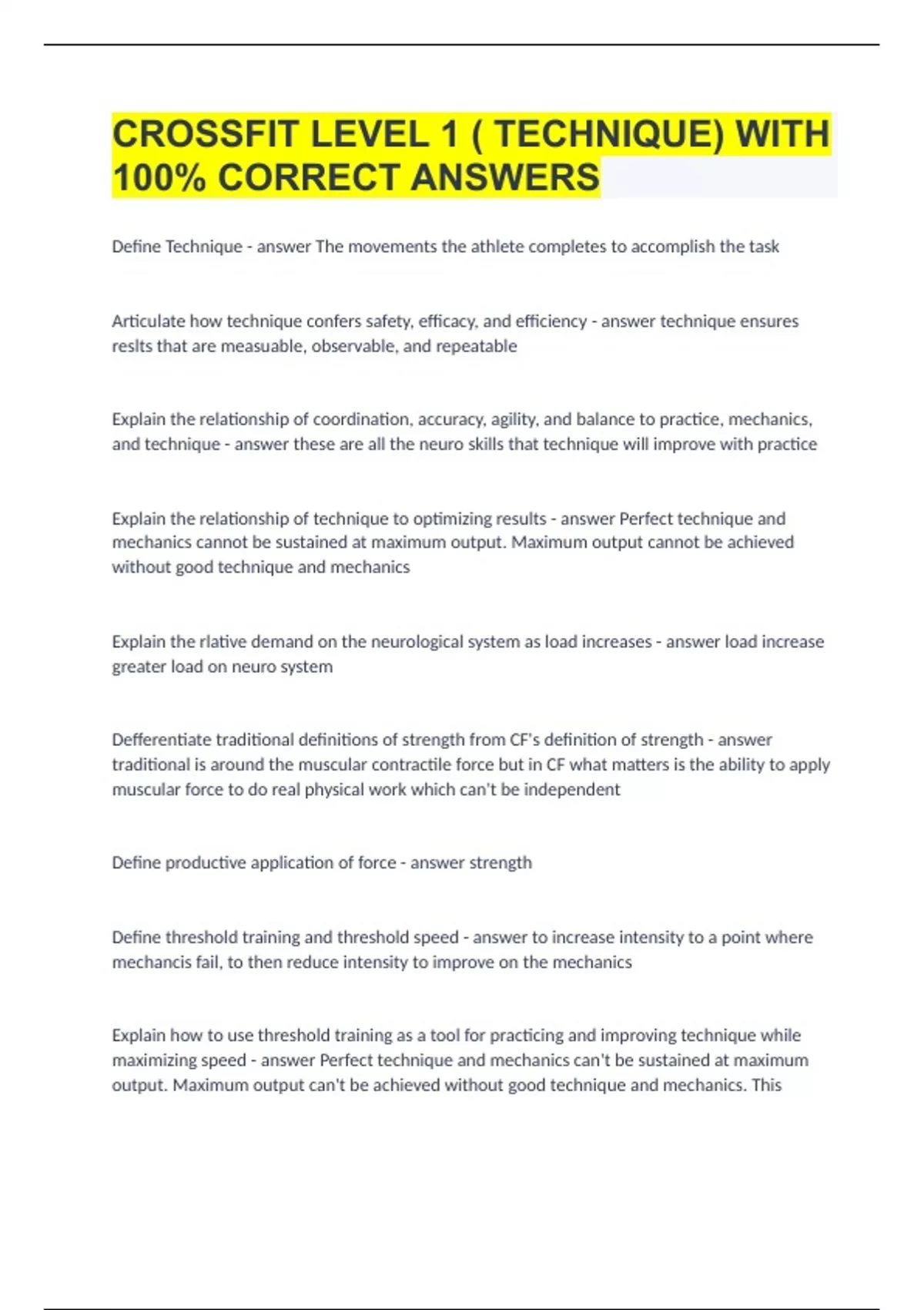 Define Technique - answer The movements the athlete completes to accomplish the task