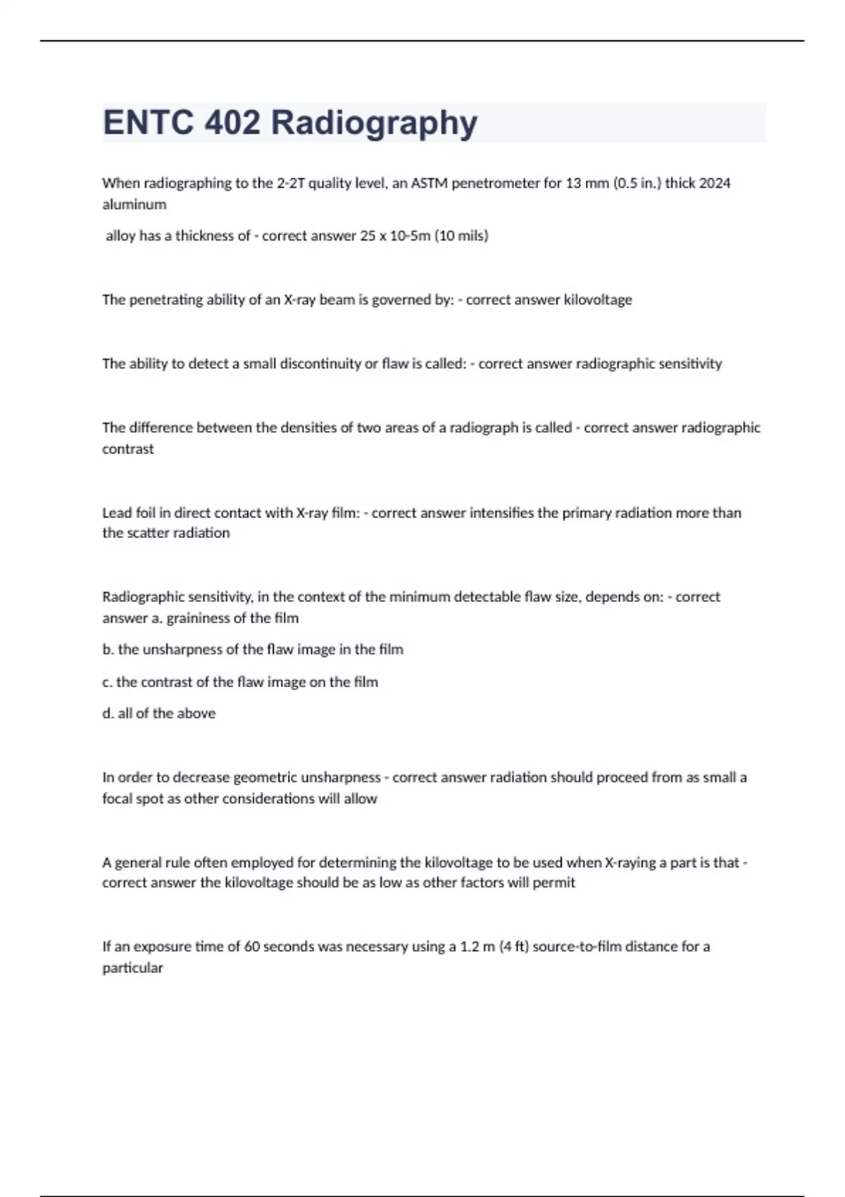 ENTC 402 Radiography correctly answered graded A+ 2023 passed