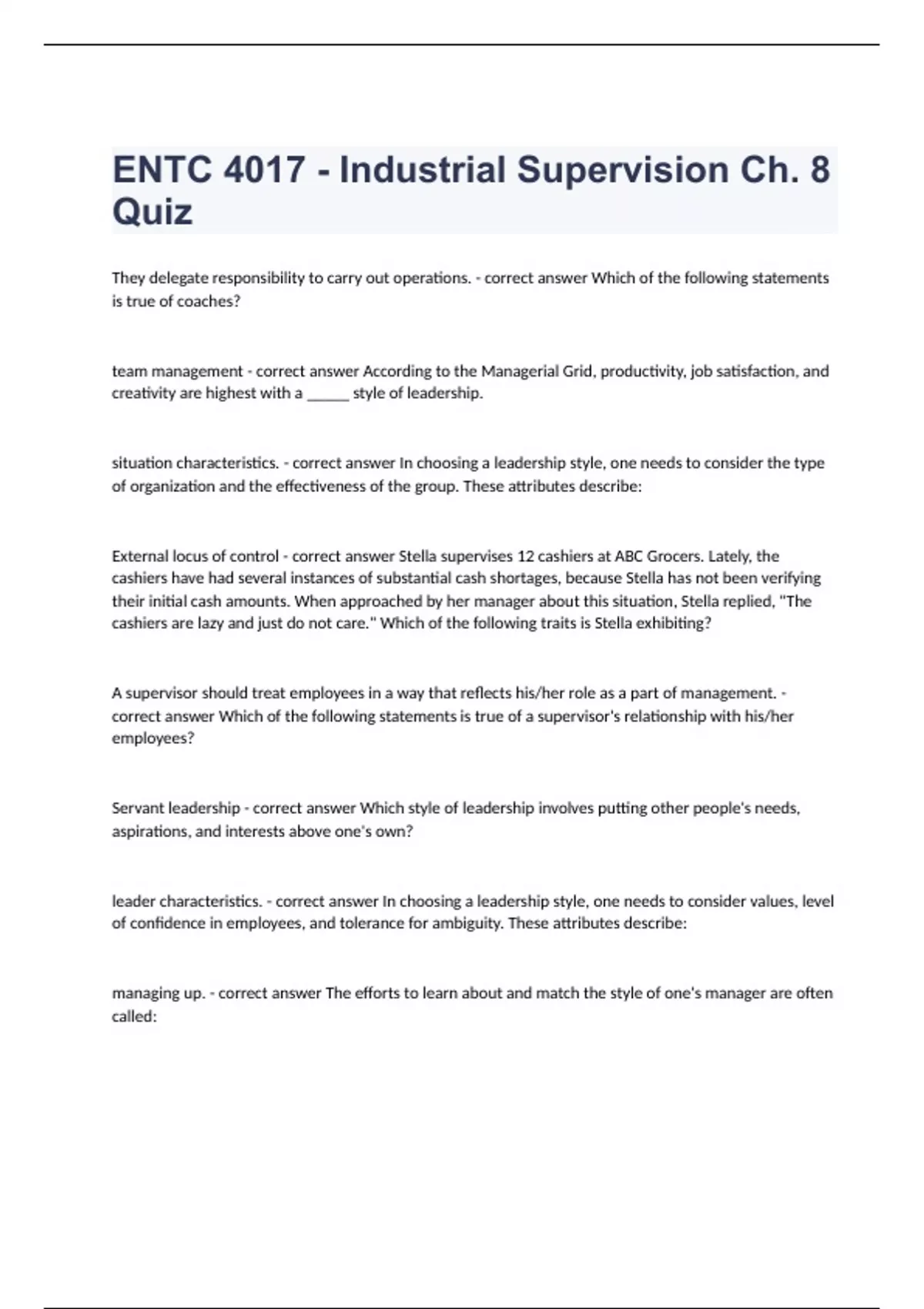ENTC 4017 - Industrial Supervision Ch. 8 Quiz 2023 already passed