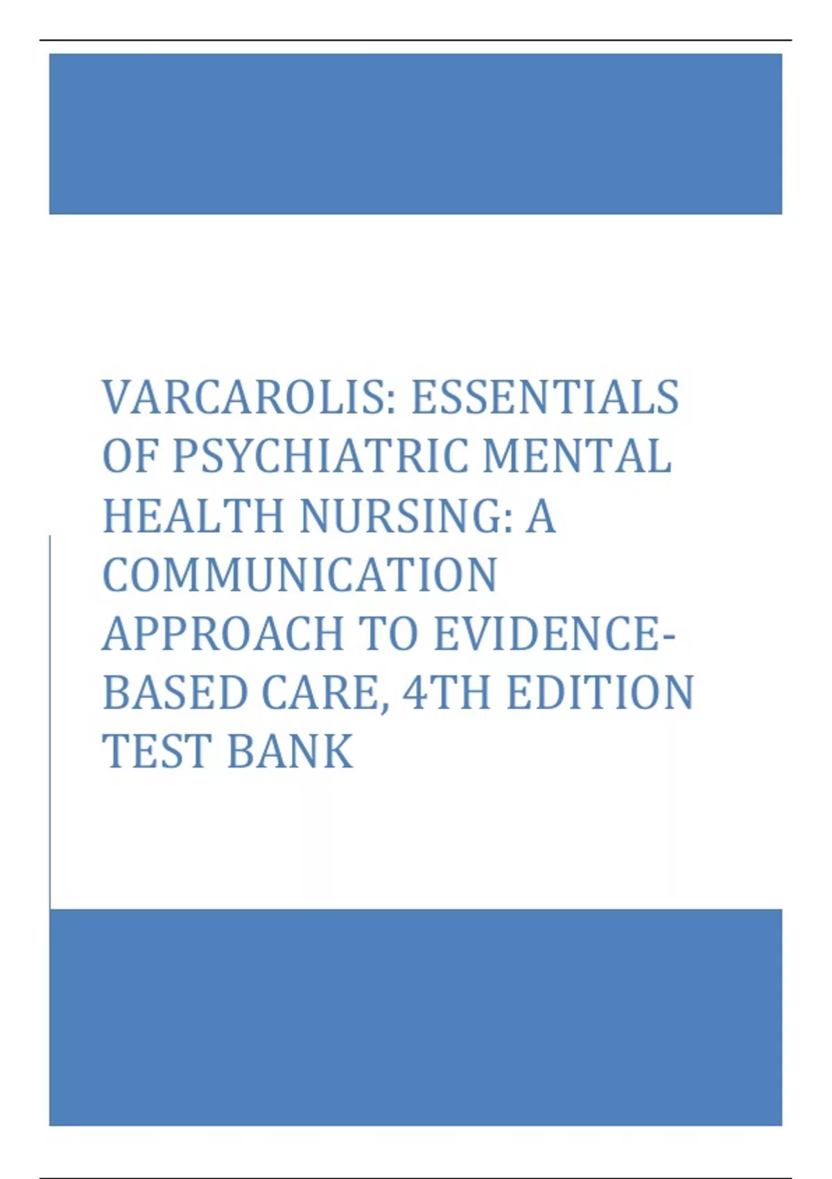 VARCAROLIS: ESSENTIALS OF PSYCHIATRIC MENTAL HEALTH NURSING: A COMMUNICATION APPROACH TO EVIDENCE-BASED CARE, 4TH EDITION TEST BANK