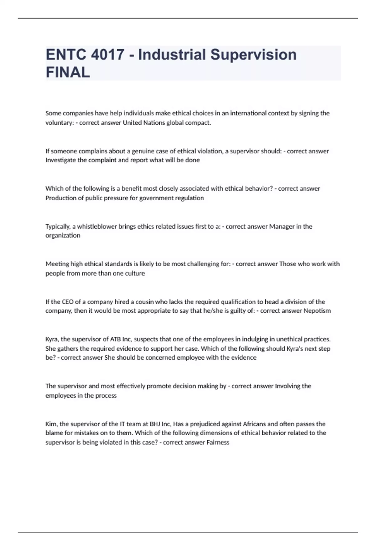 ENTC 4017 - Industrial Supervision FINAL correctly answered 2023 passed