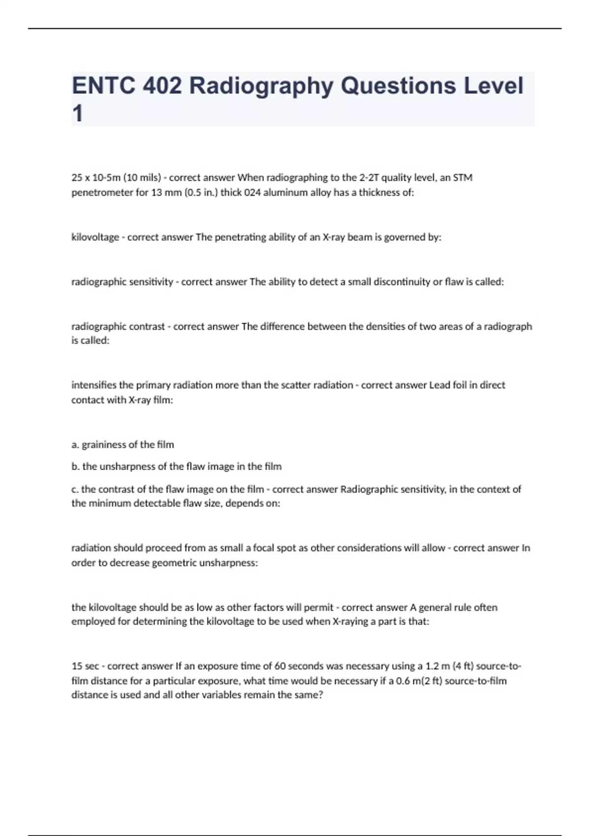 ENTC 402 Radiography Questions Level 1 fully solved