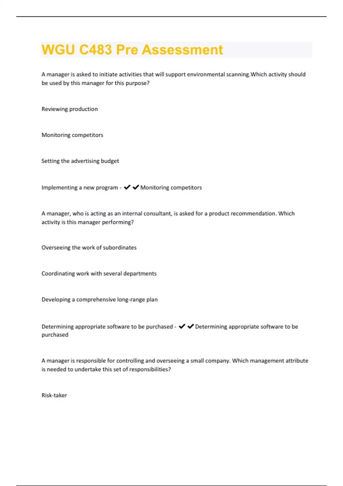 WGU C483 Pre Assessment Questions and Answers with complete solutions
