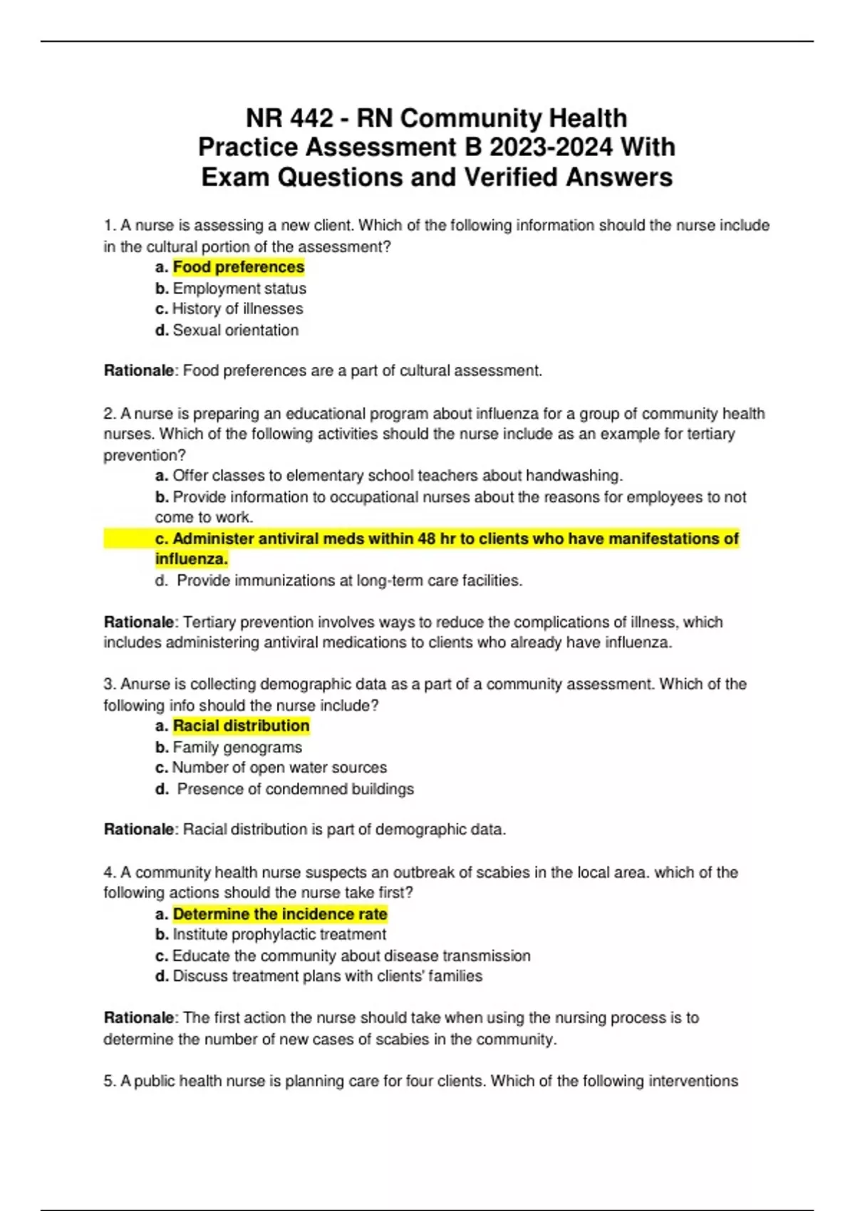 NR 442 - RN Community Health Practice Assessment B With Exam Questions and Verified Answers 1