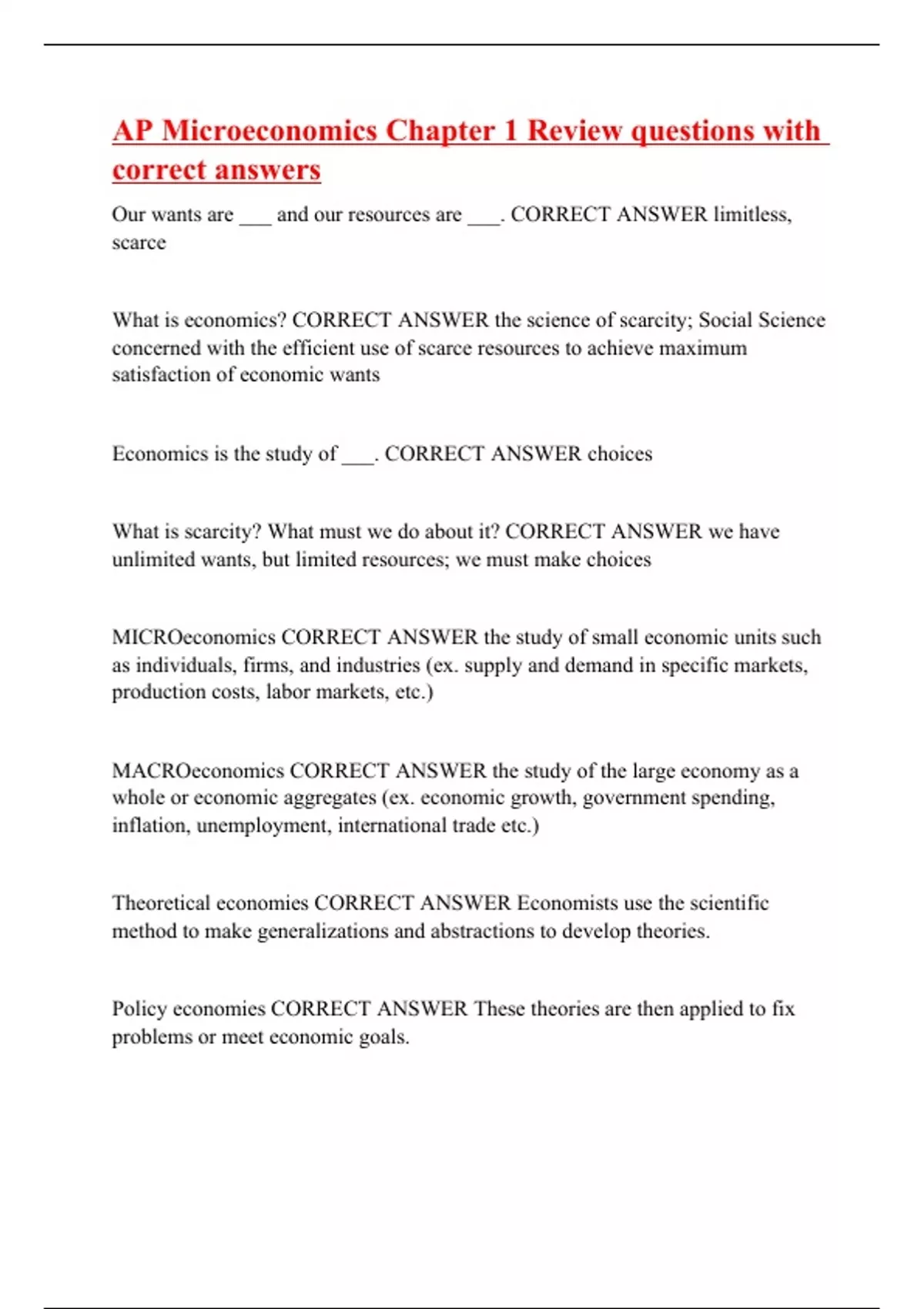 AP Microeconomics Chapter 1 Review questions with correct answers