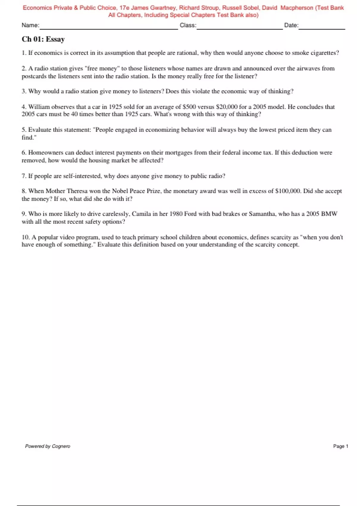 Economics Private & Public Choice 17th Edition By James Gwartney, Richard Stroup, Russell Sobel, David Macpherson (Test Bank, 100% Original Verified, A+ Grade)