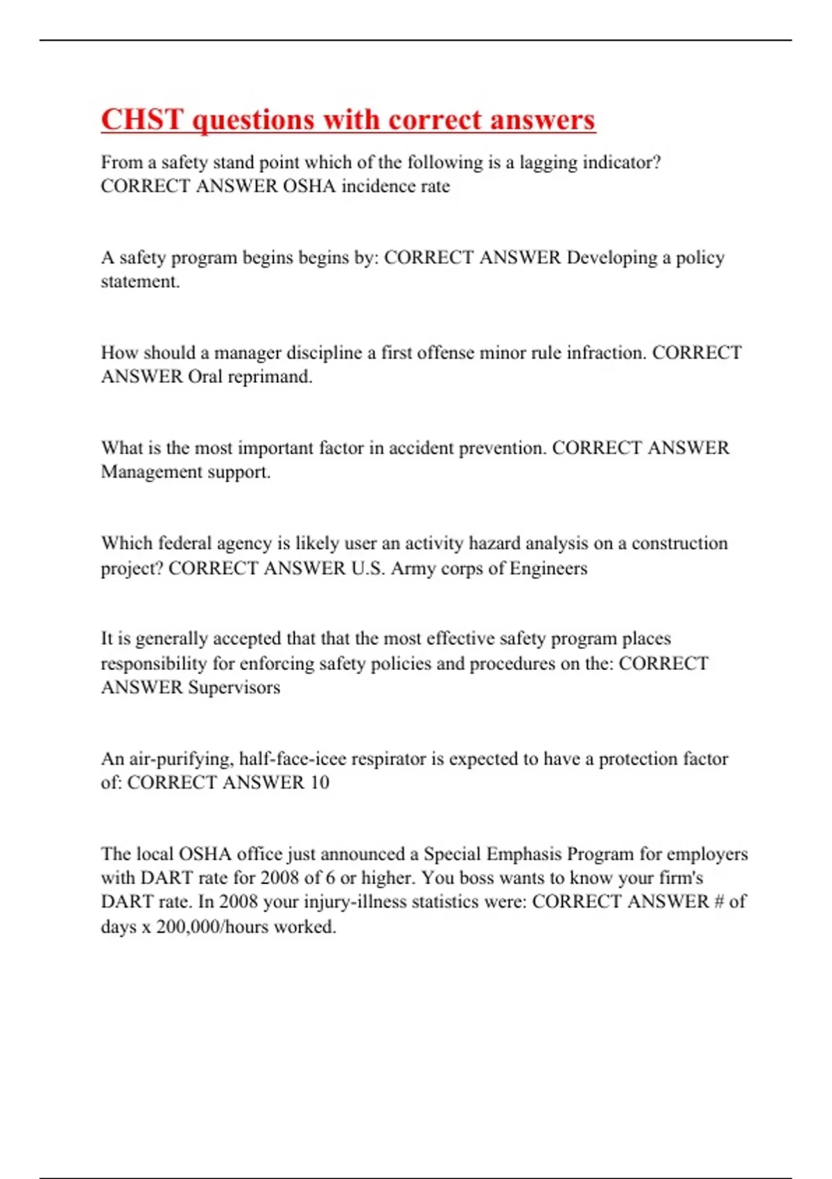 CHST questions with correct answers