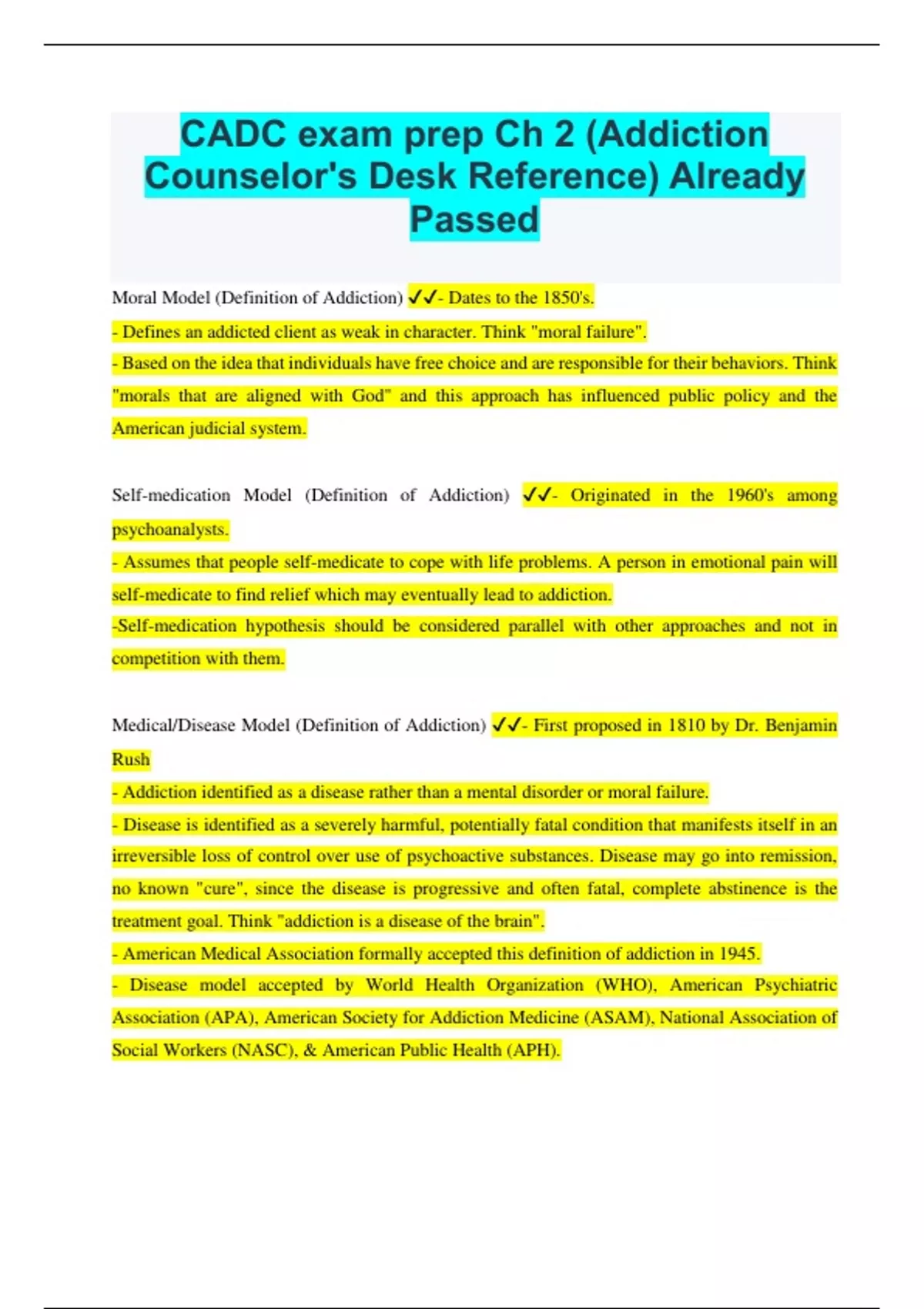 CADC exam prep Ch 2 (Addiction Counselor's Desk Reference) Already Passed