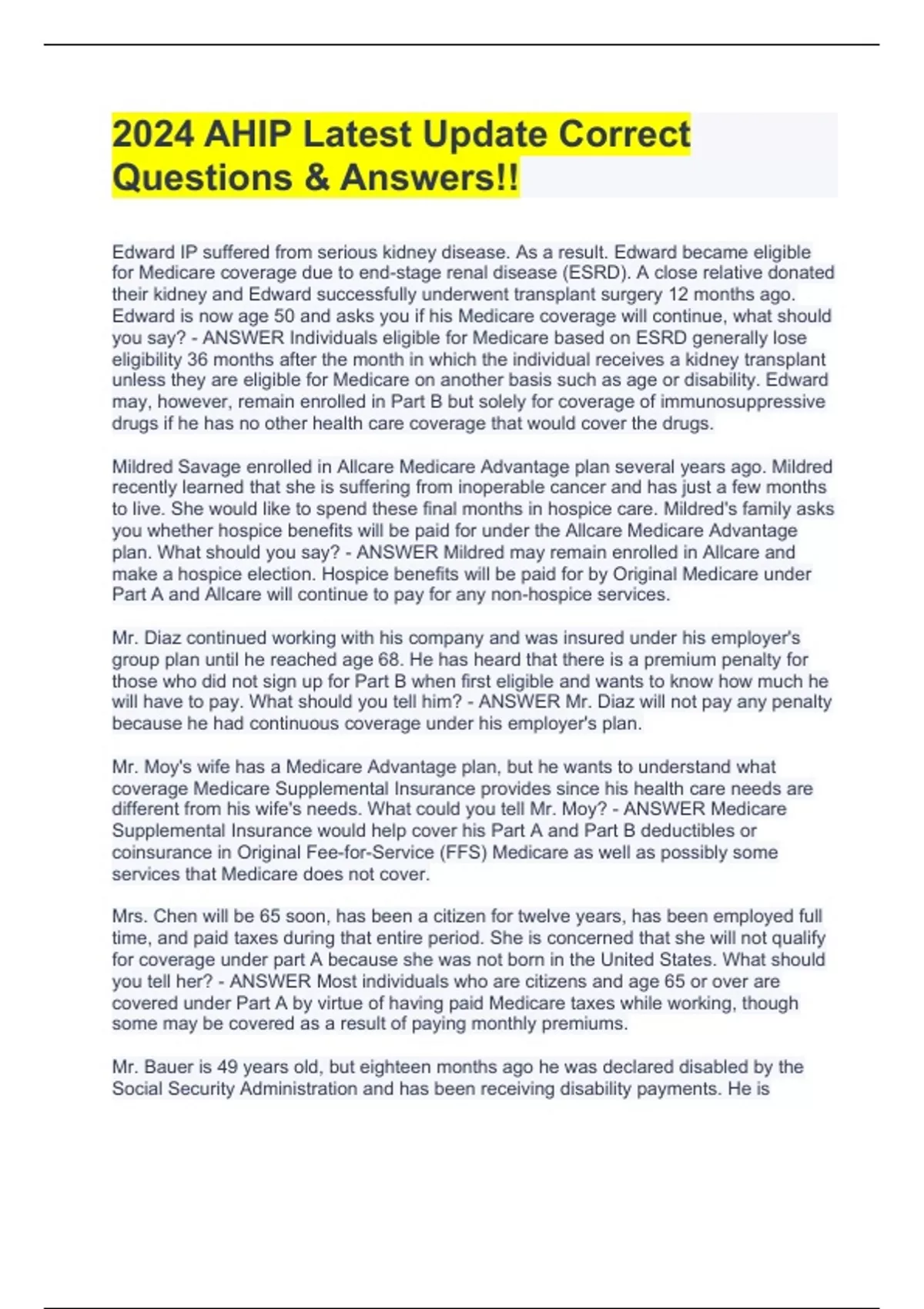 2024 AHIP Latest Update Correct Questions & Answers!!