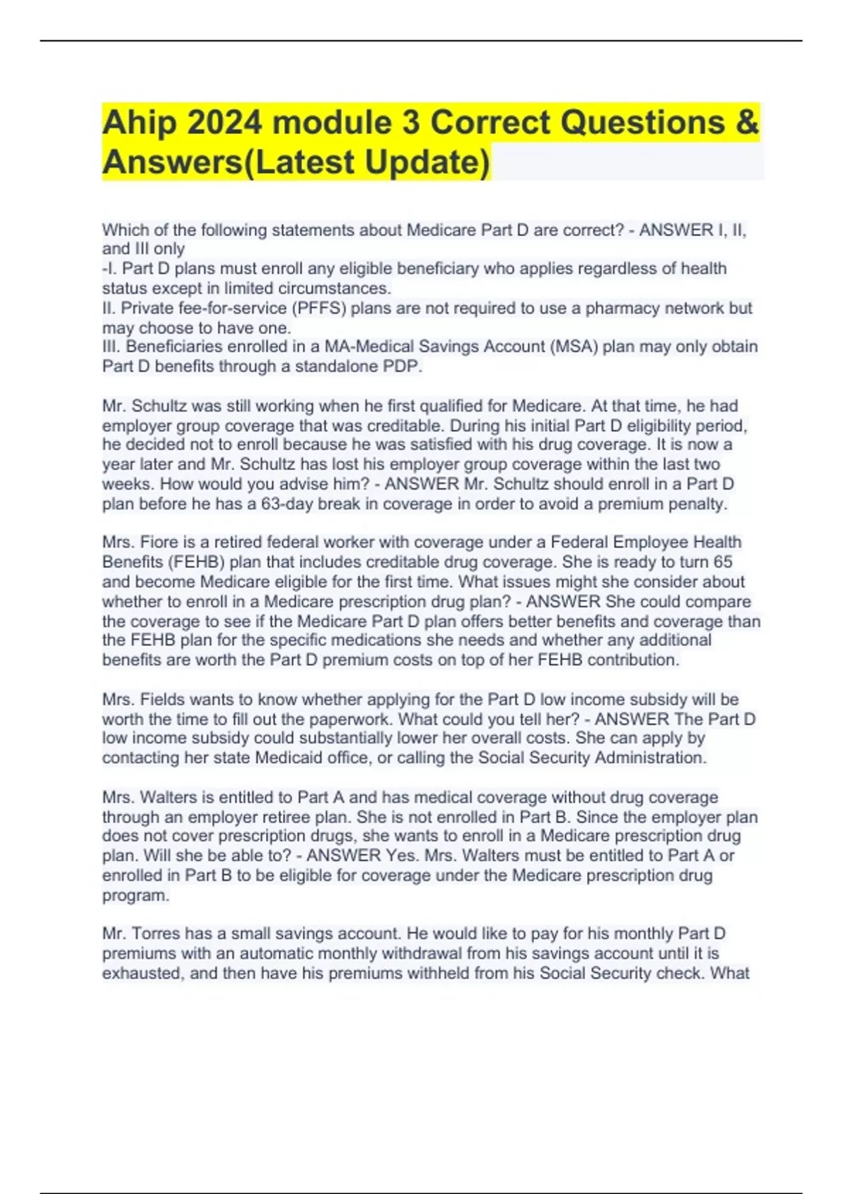 Ahip 2024 module 3 Correct Questions & Answers(Latest Update)