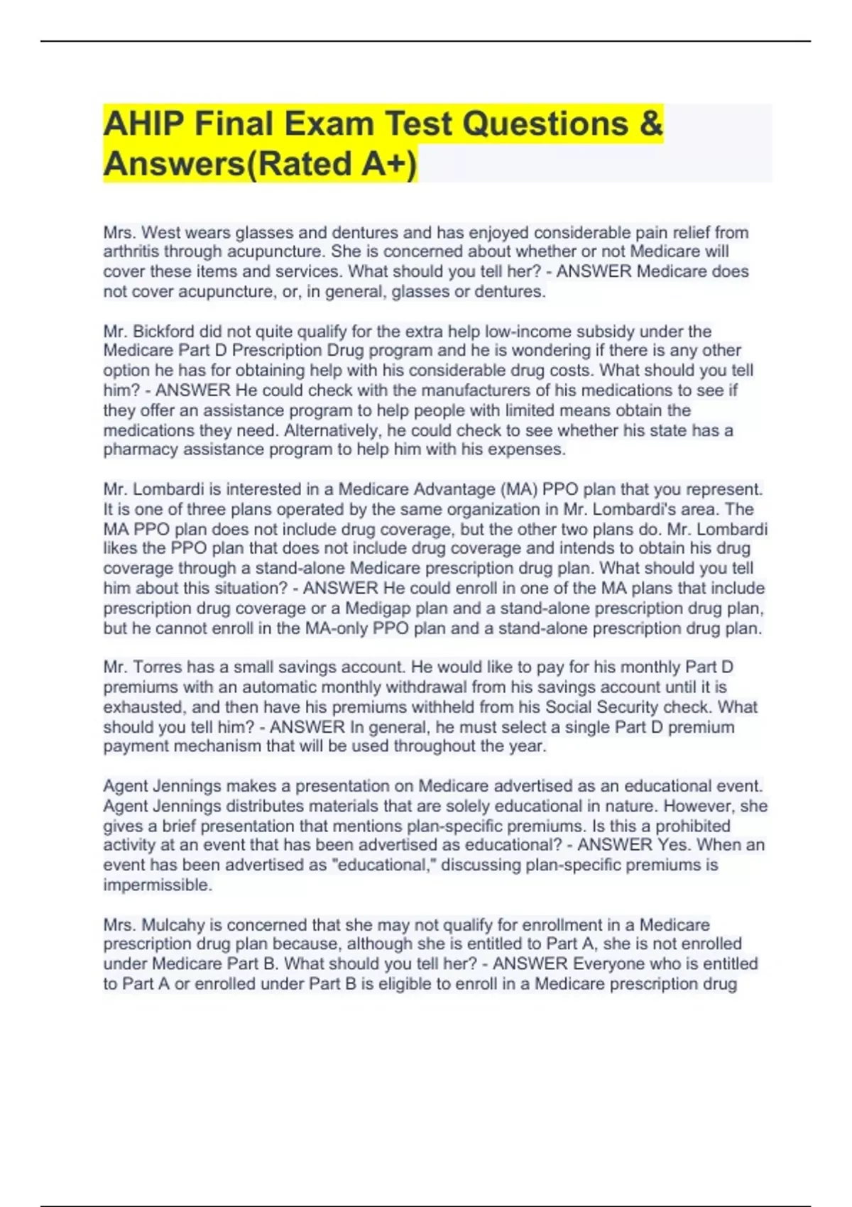 AHIP Final Exam Test Questions & Answers(Rated A+)