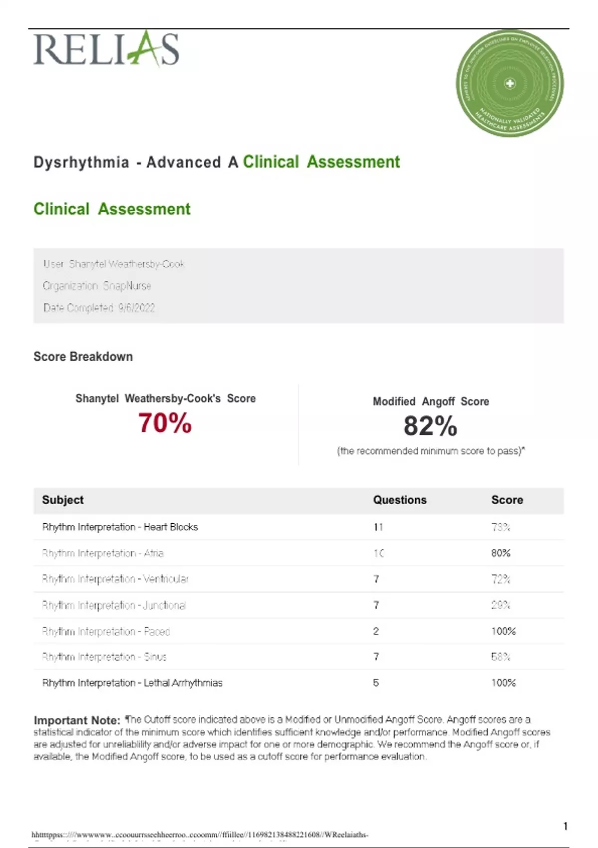 Shanytel Weathersby-Cook's Score Modified Angoff Score