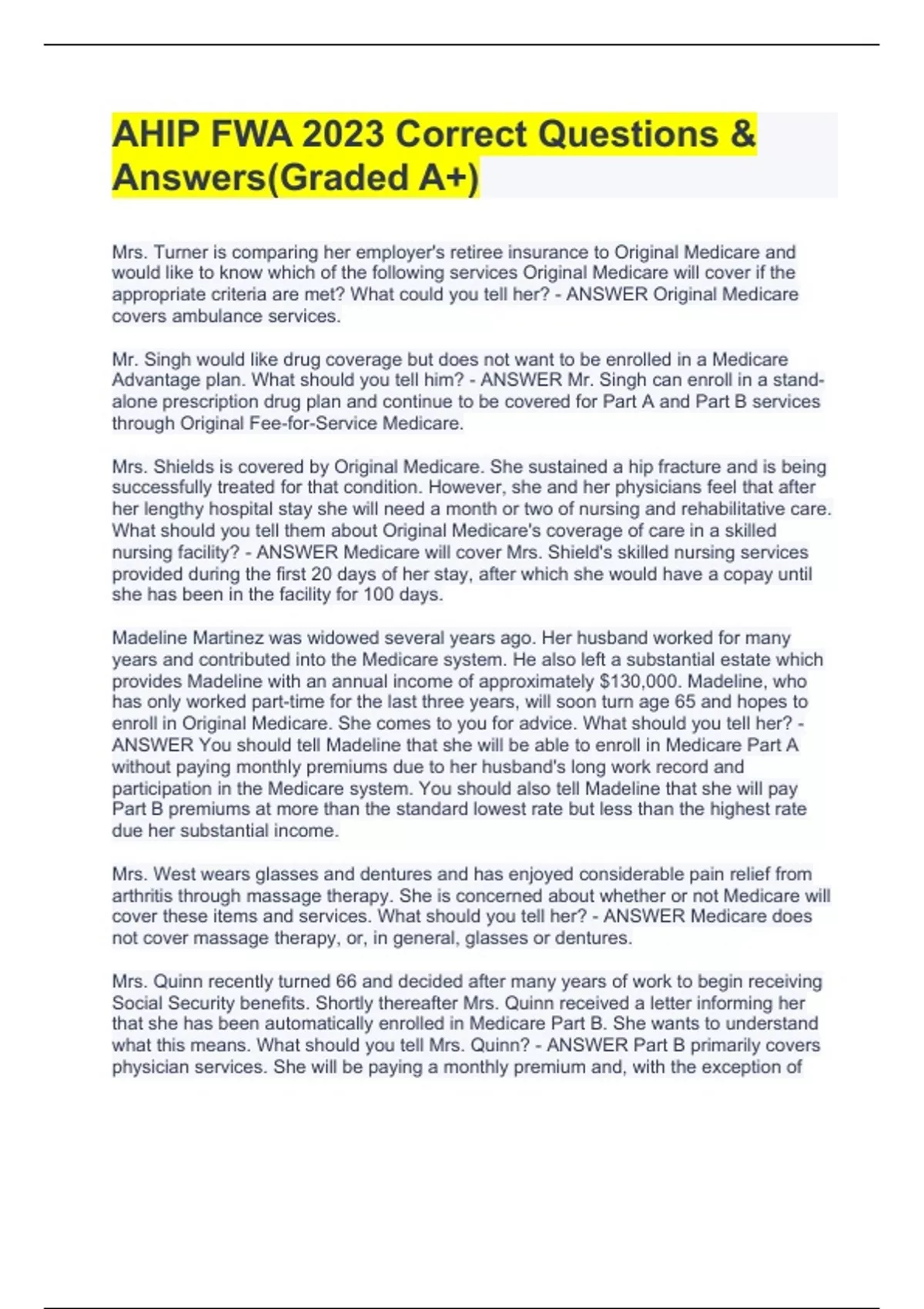 AHIP FWA 2023 Correct Questions & Answers(Graded A+)