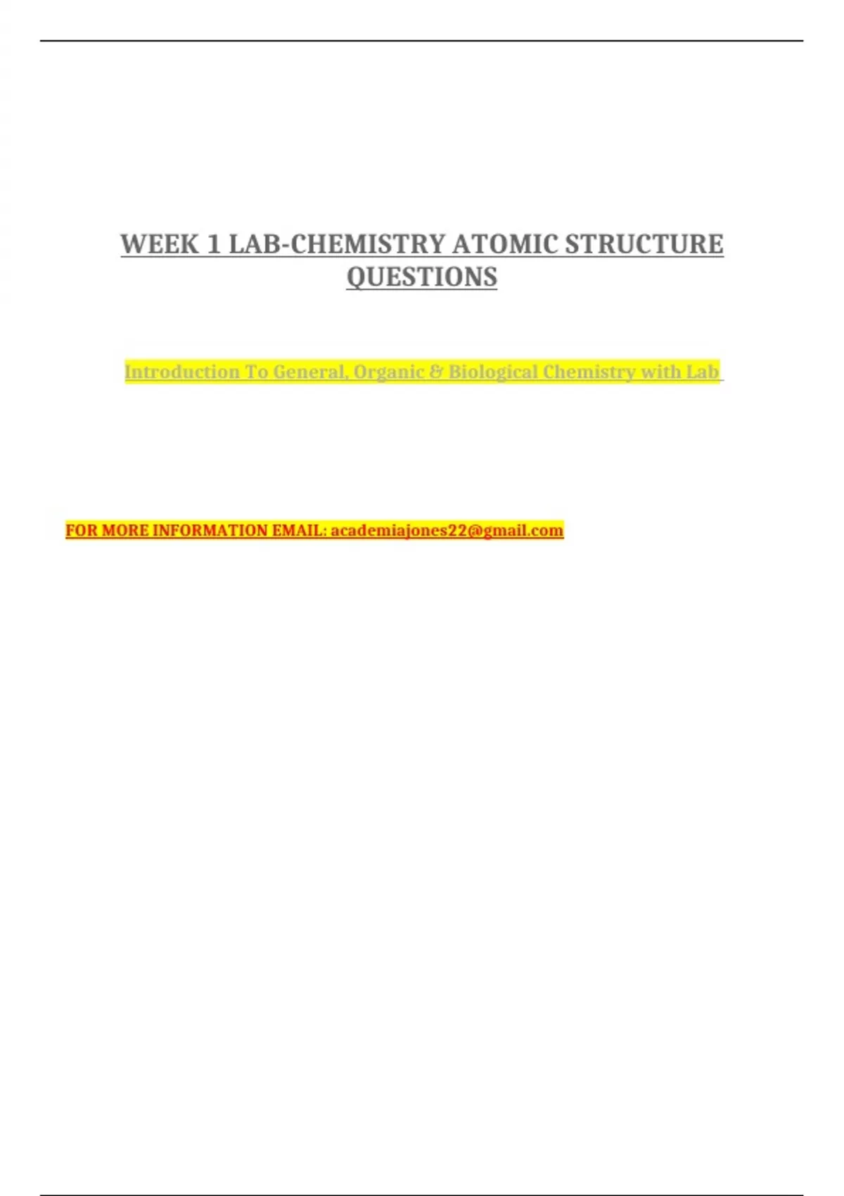 WEEK 1 LAB-CHEMISTRY ATOMIC STRUCTURE QUESTIONS AND ANSWERS.