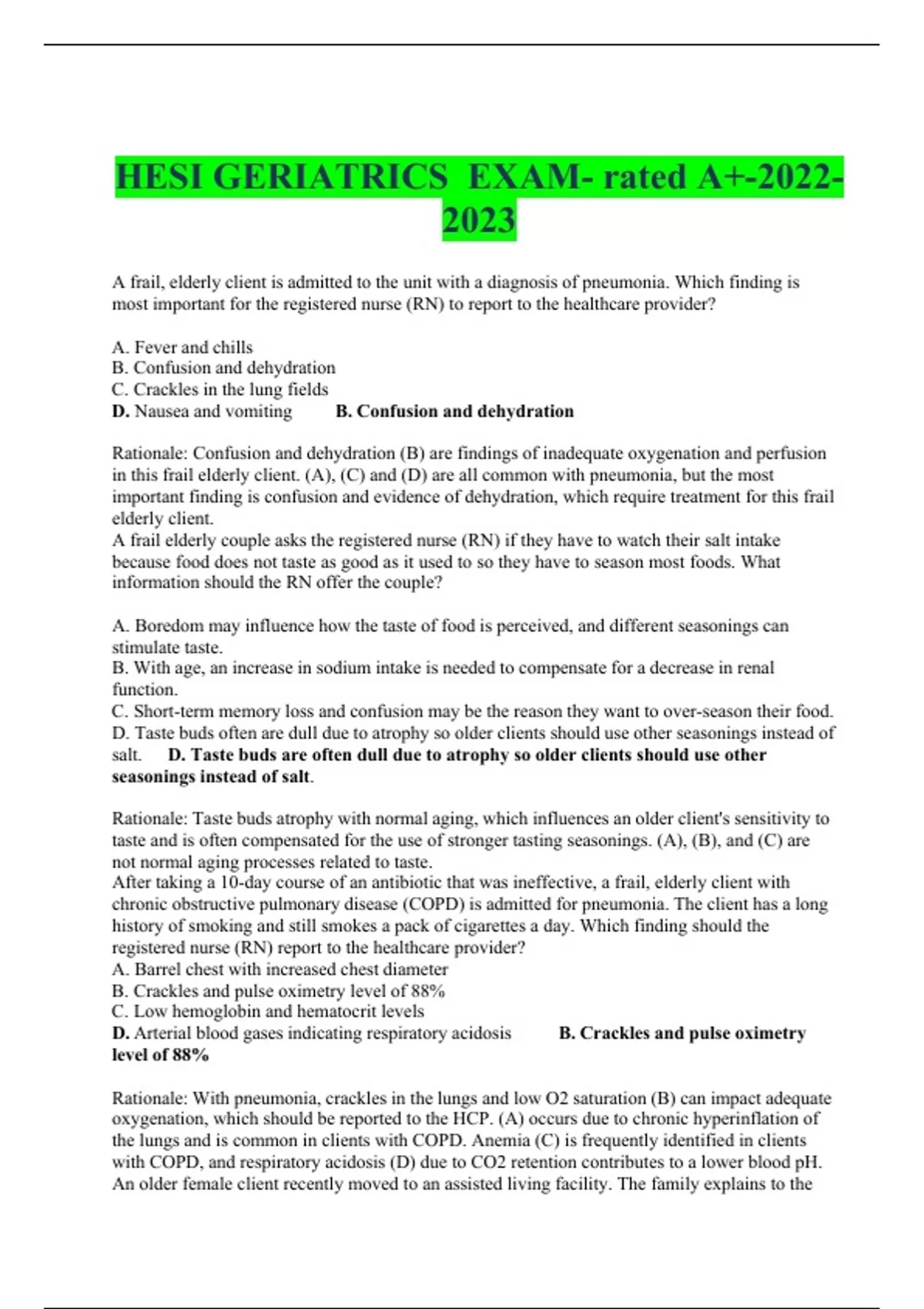 HESI GERIATRICS EXAM- rated A+-2022- 2023