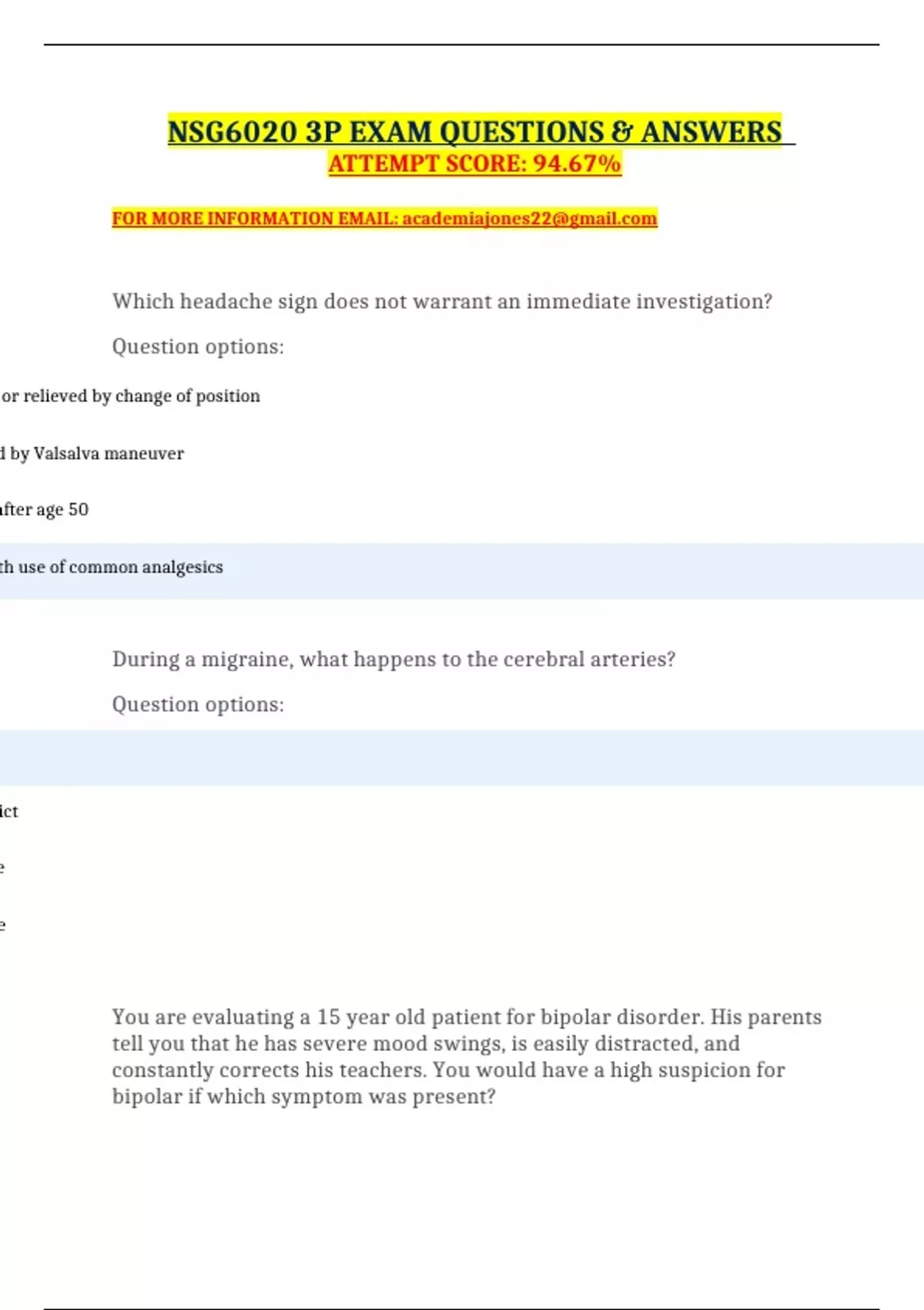 NSG6020 3P EXAM QUESTIONS & ANSWERS