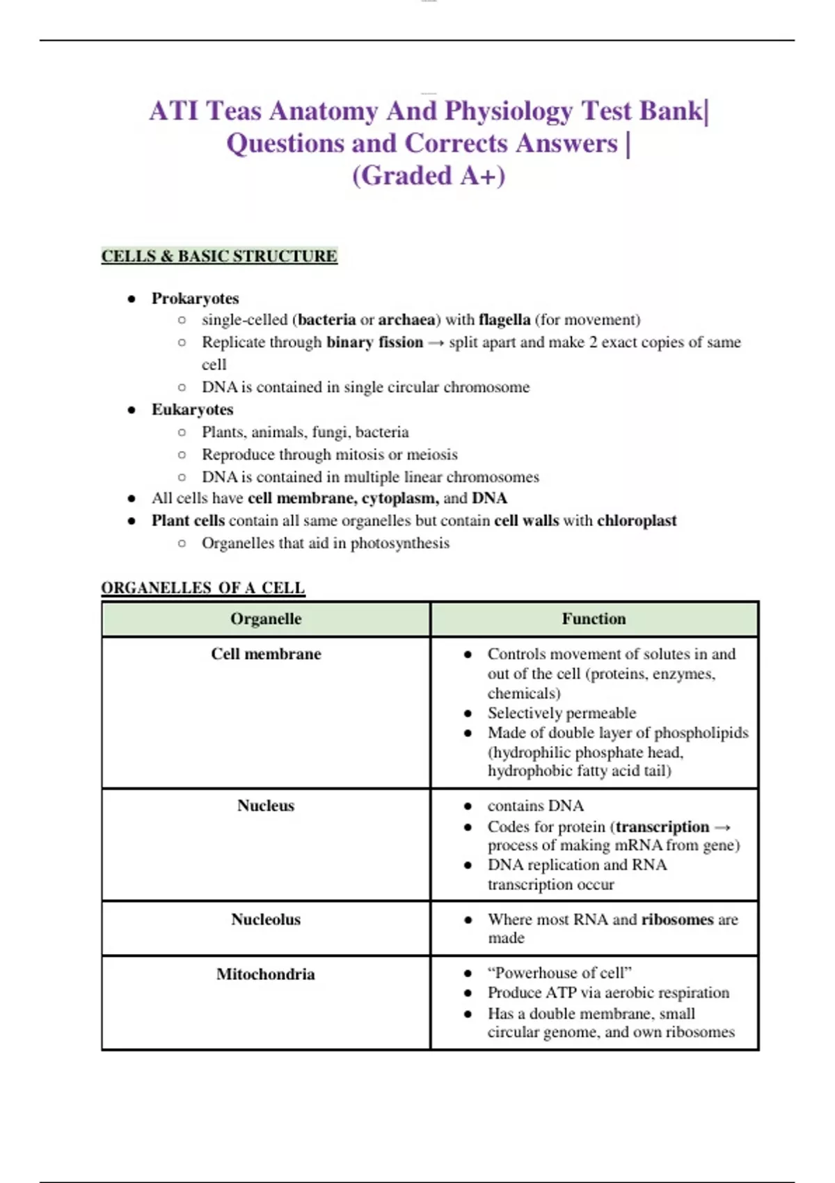 ATI Teas Anatomy And Physiology Test Bank| Questions and Corrects Answers | (Graded A+)