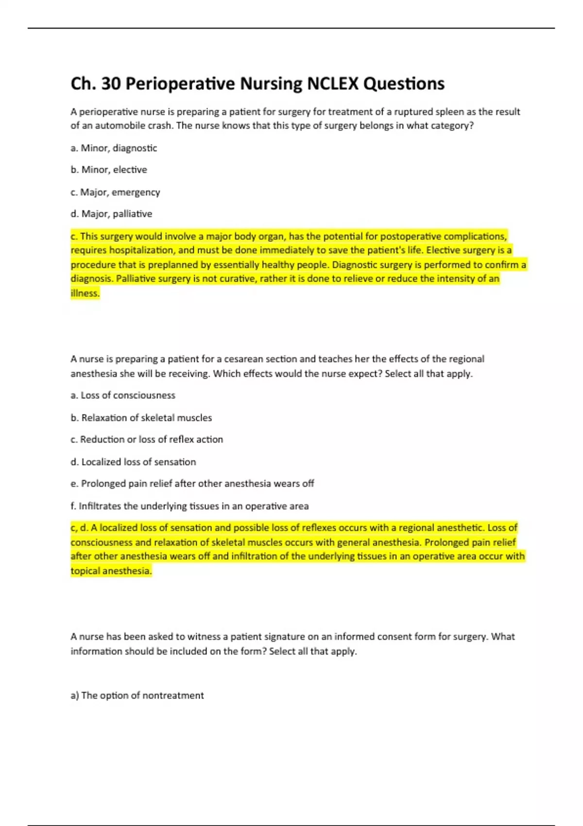 Ch. 30 Perioperative Nursing NCLEX Questions