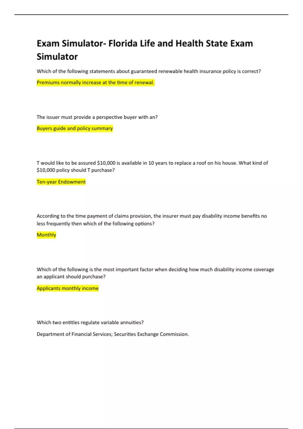 Exam Simulator- Florida Life and Health State Exam Simulator
