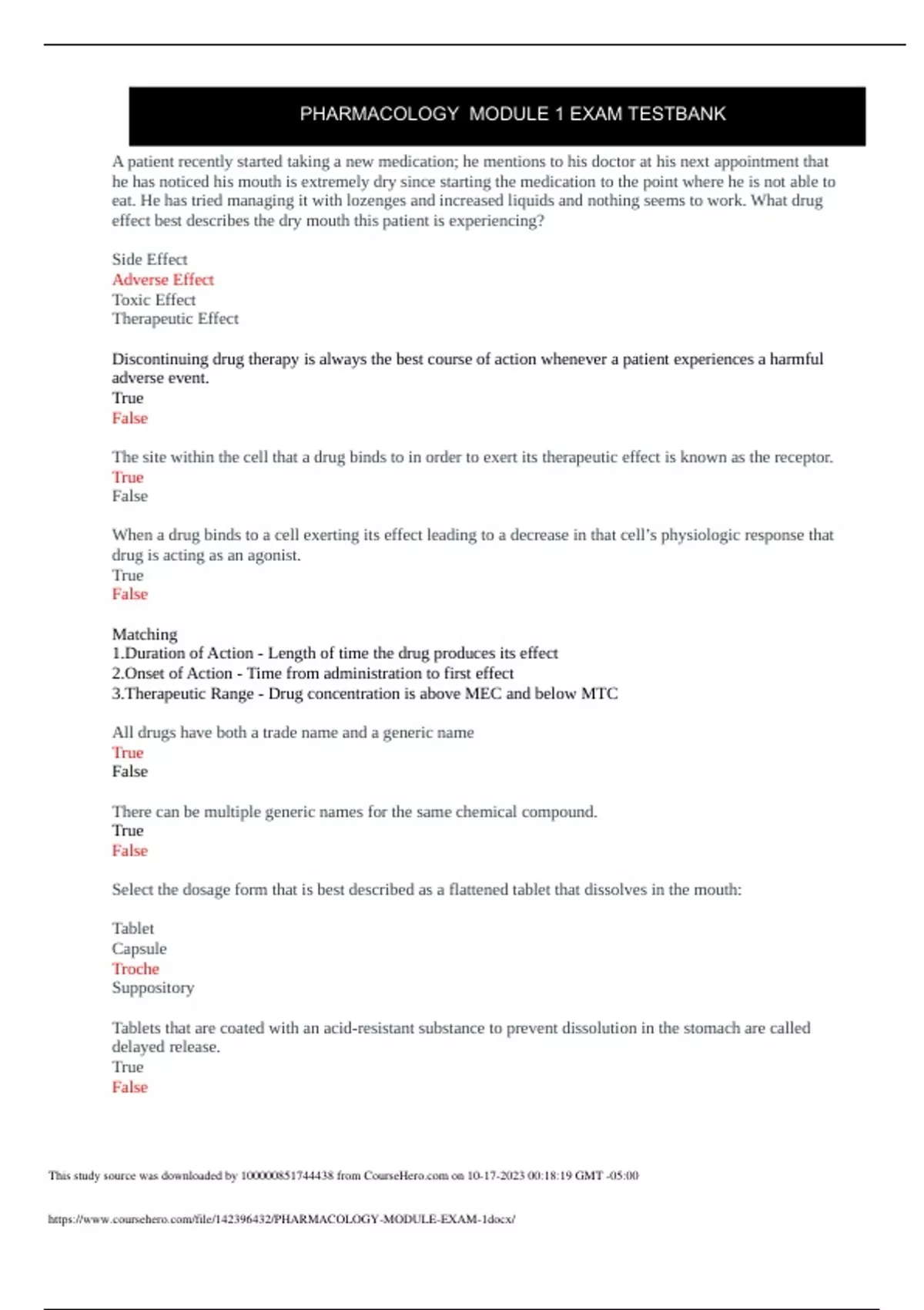 This is a pharmacology module 1 exam with responses. These are revision questions with answers and their responses