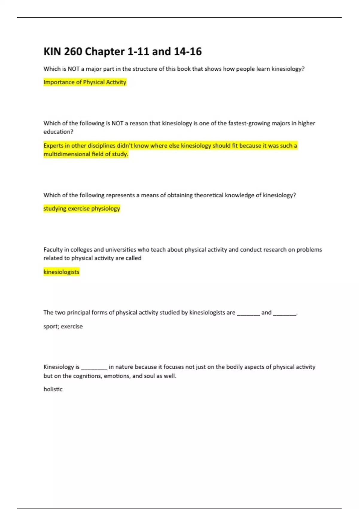 KIN 260 Chapter 1-11 and 14-16
