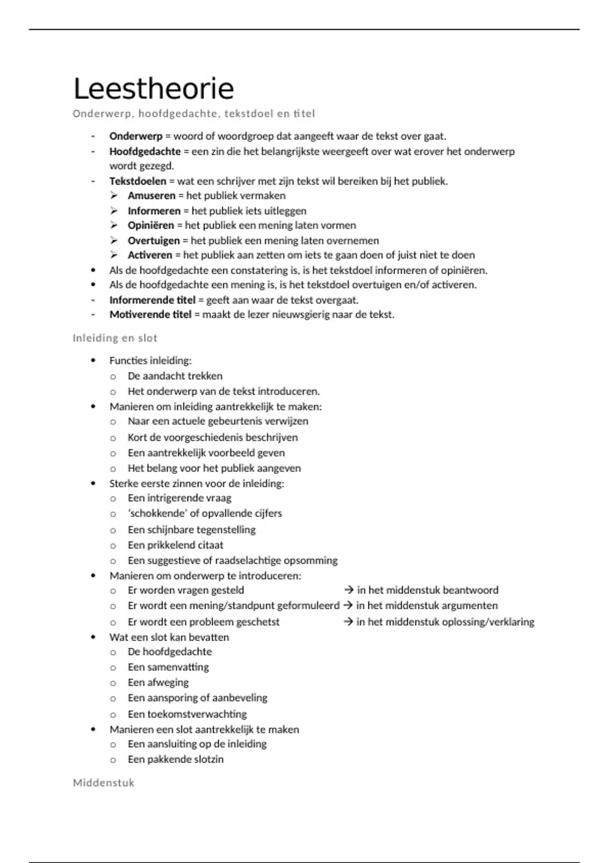Samenvatting - Nederlands, leestheorie