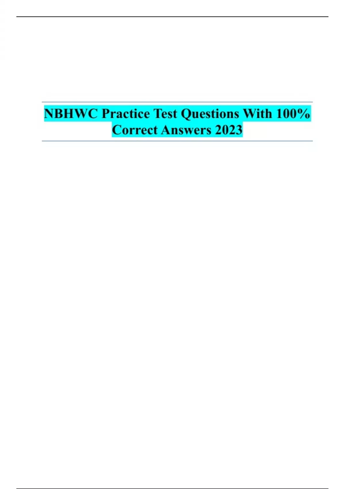 NBHWC Practice Test Questions With 100% Correct Answers 2023