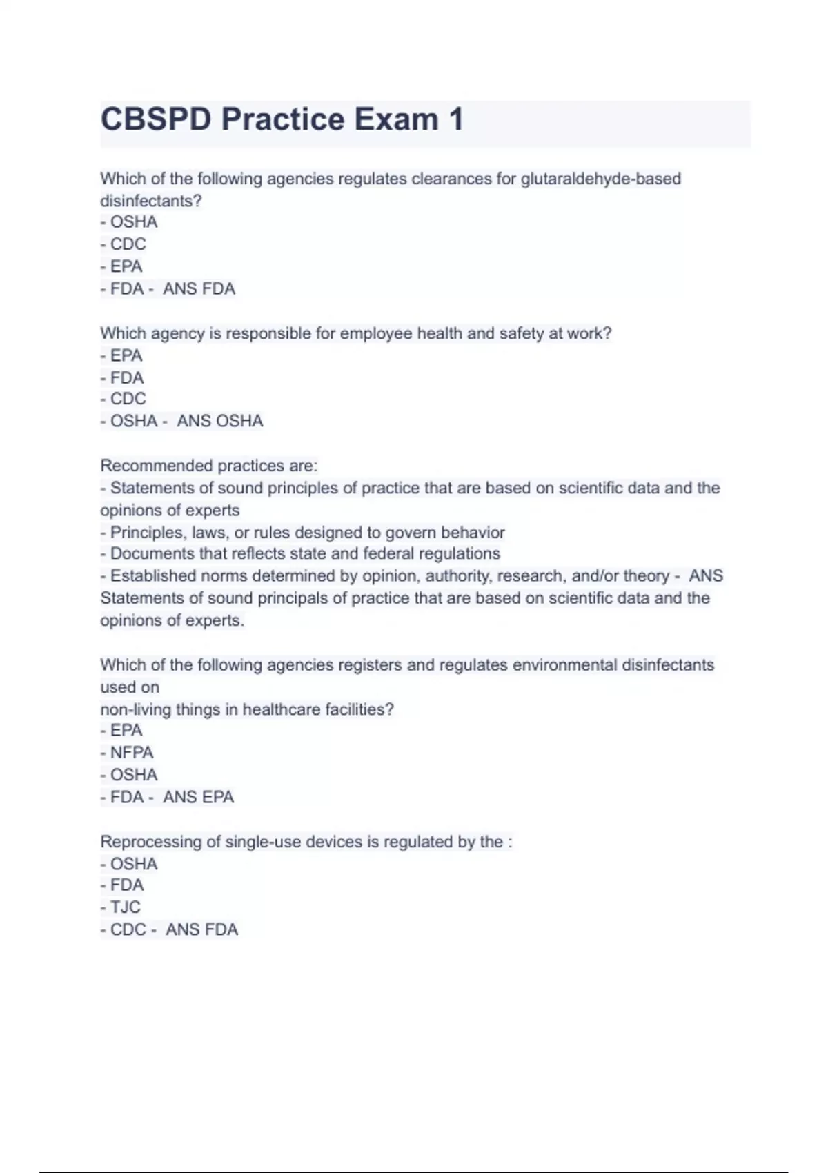CBSPD Practice Exam 1(Basics of Flexible Endoscope Reprocessing)2023( A+ GRADED 100% VERIFIED).