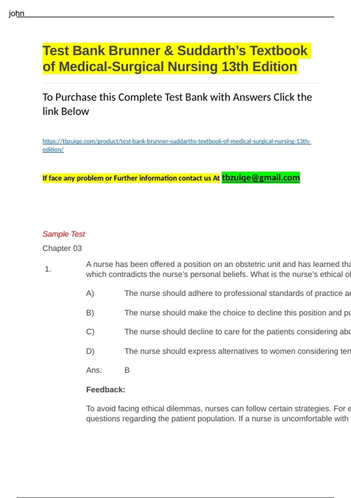 Test Bank Brunner & Suddarth’s Textbook