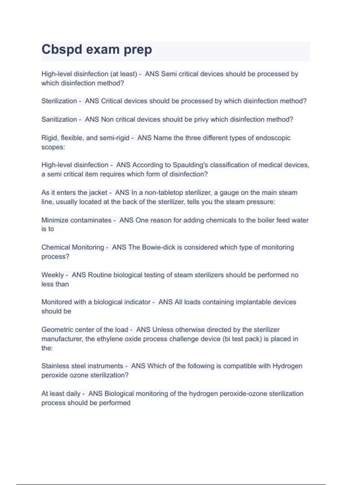 sterilization ans critical devices should be pr