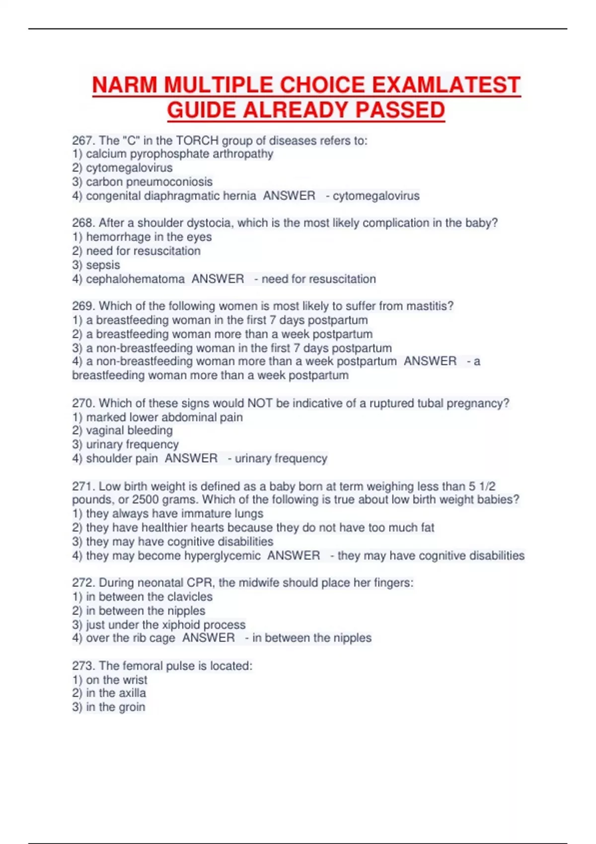 NARM MULTIPLE CHOICE EXAMLATEST GUIDE ALREADY PASSED