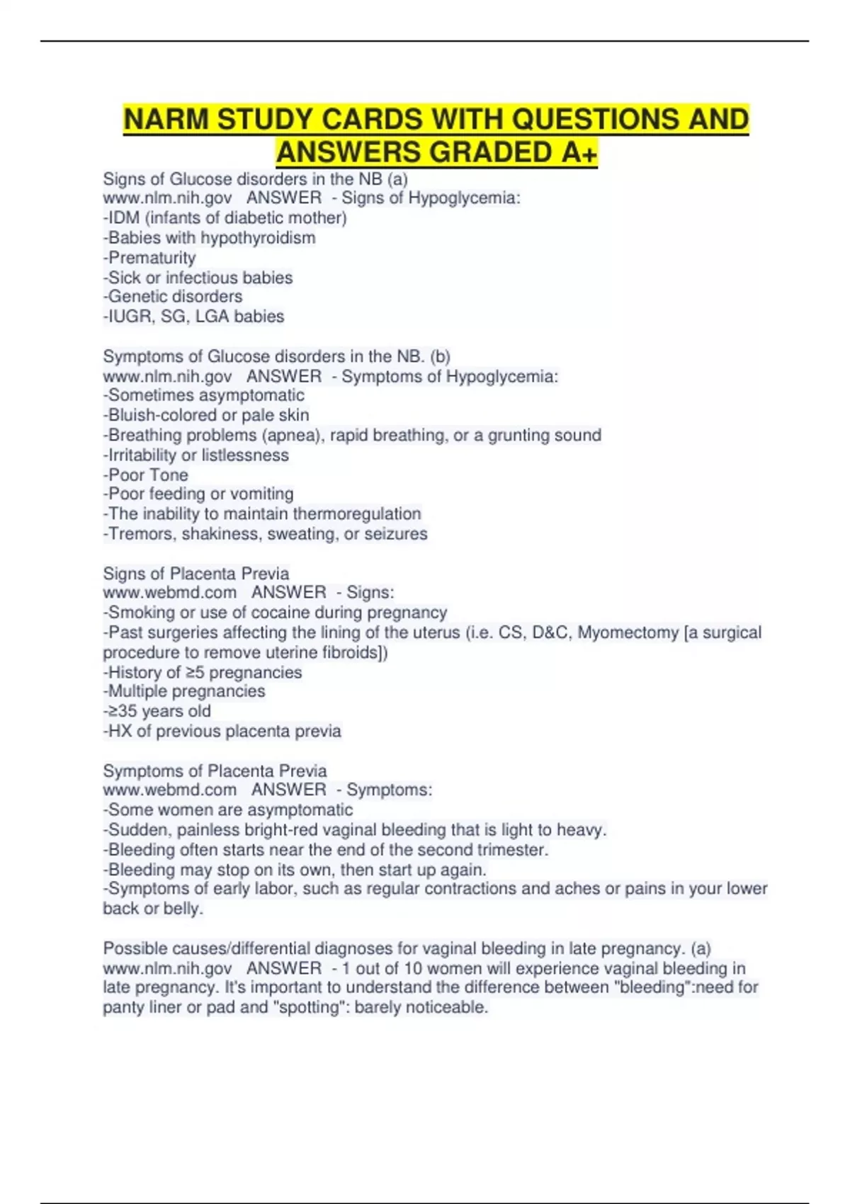NARM STUDY CARDS WITH QUESTIONS AND ANSWERS GRADED A+