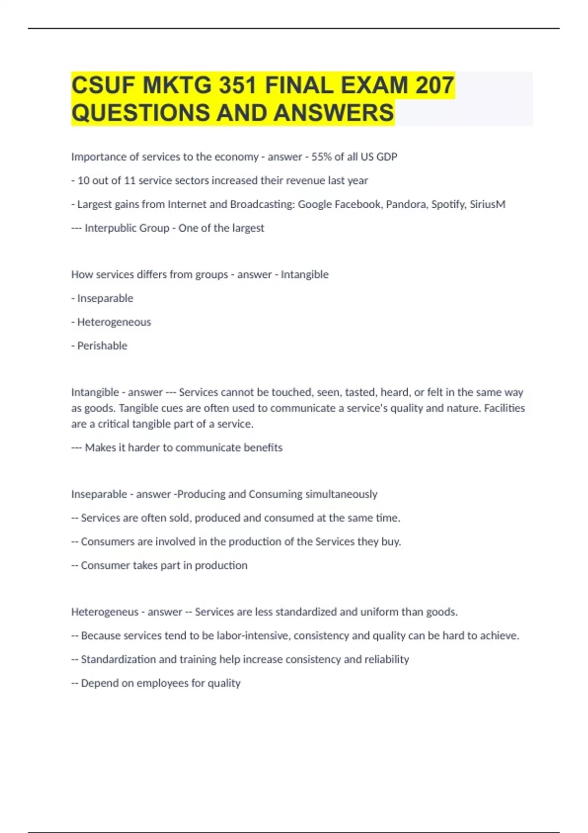CSUF MKTG 351 FINAL EXAM| 207 QUESTIONS AND ANSWERS|GUARANTEED SUCCESS