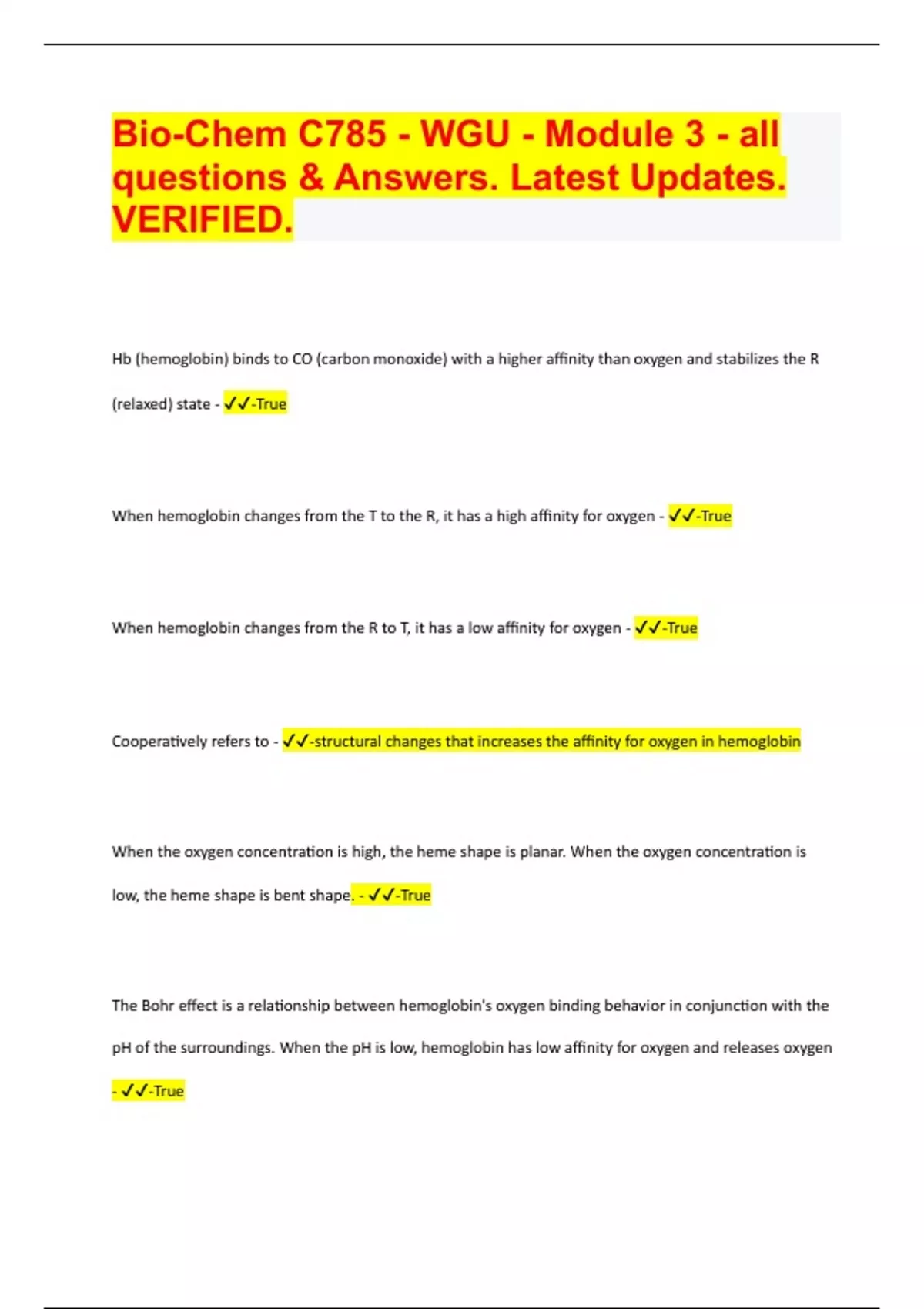 Bio-Chem C785 - WGU - Module 3 - all questions & Answers. Latest Updates. VERIFIED 2024