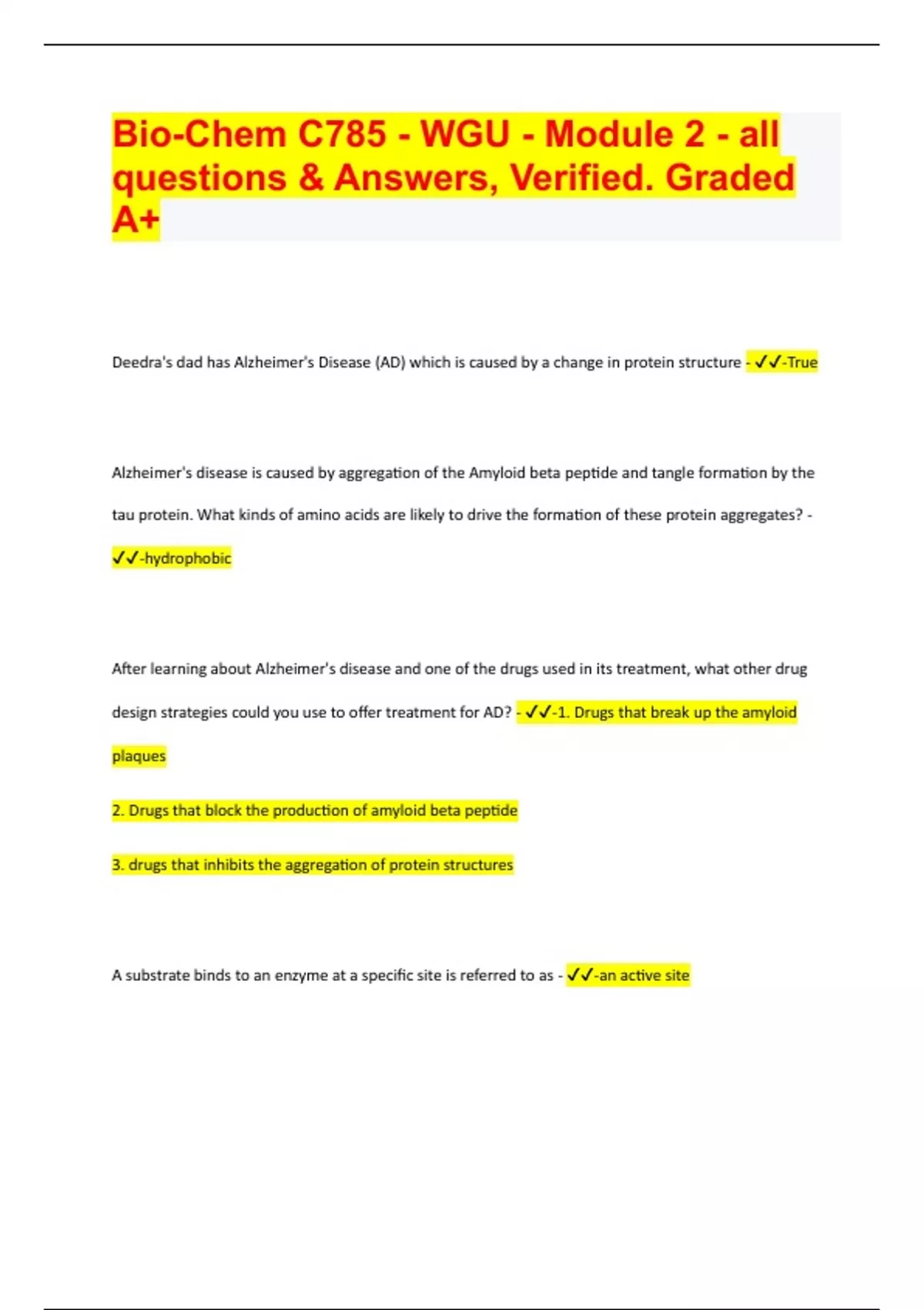 Bio-Chem C785 - WGU - Module 2 - all questions & Answers, Verified. Graded A+ 2024