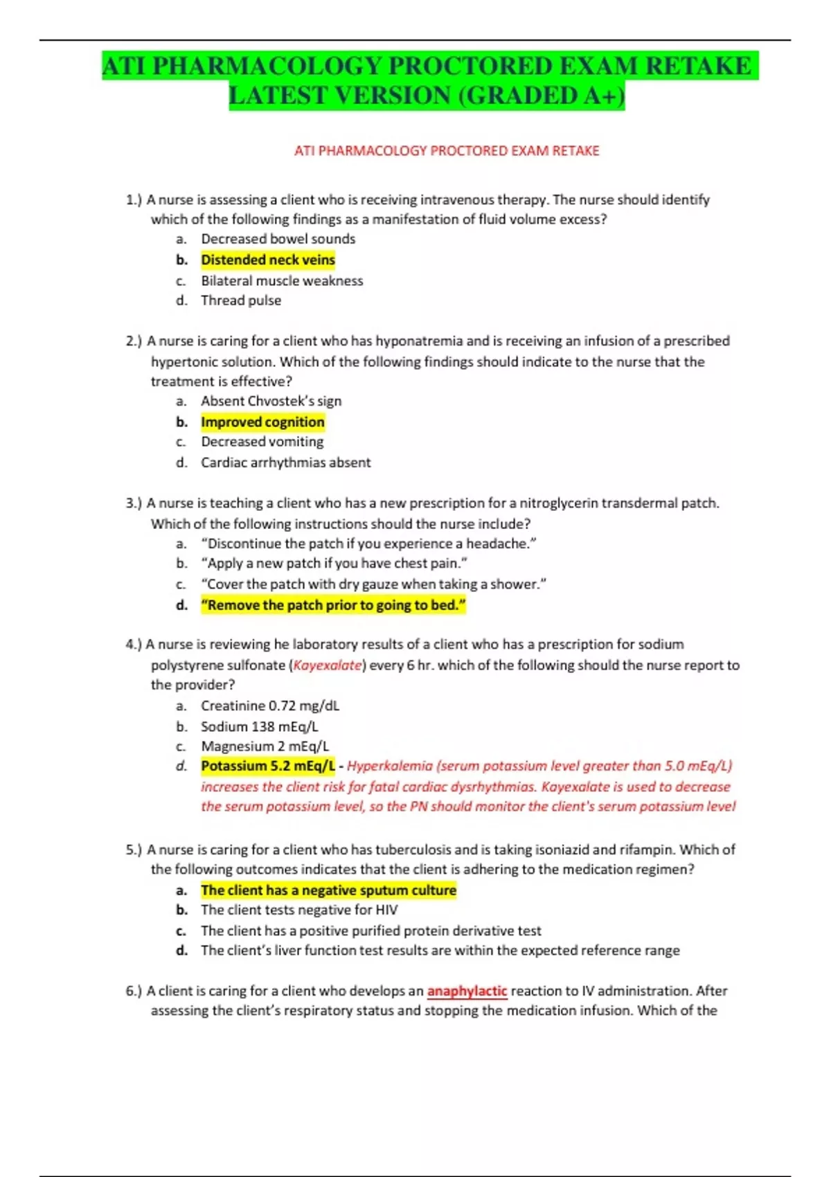 ATI PHARMACOLOGY PROCTORED EXAM RETAKE