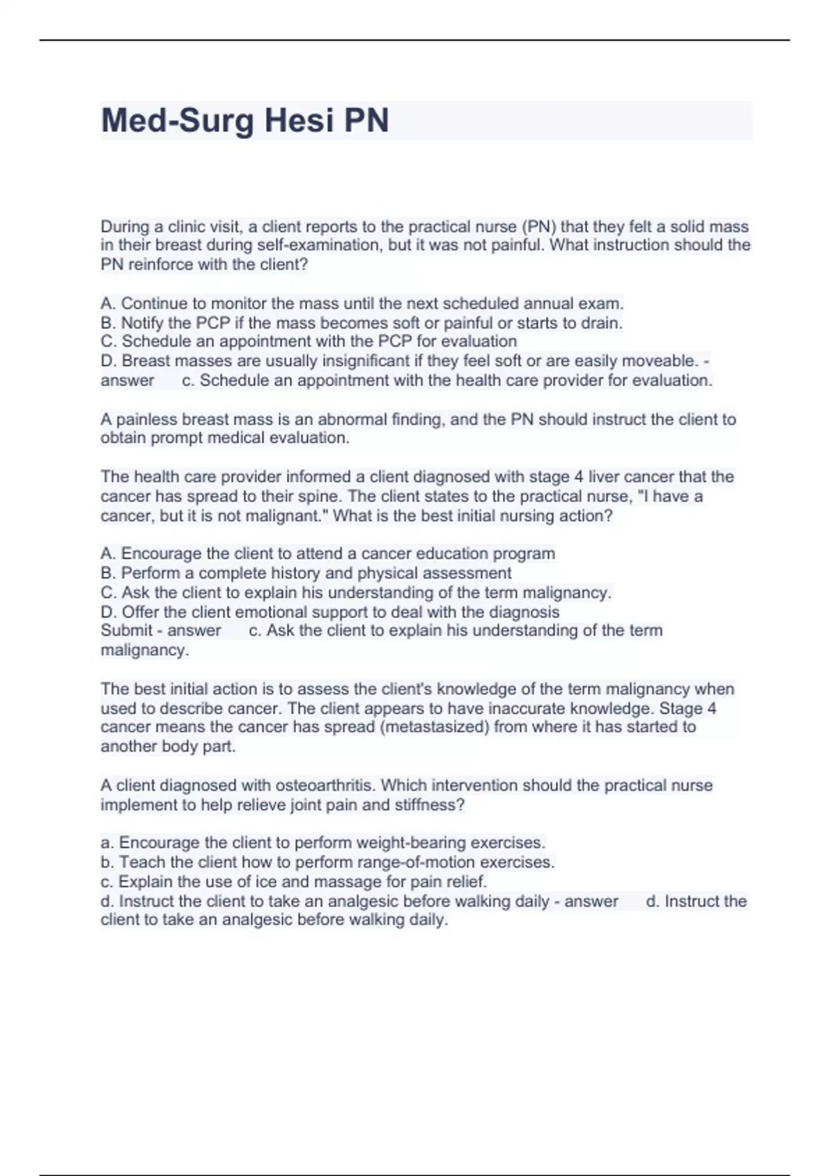 Med-Surg Hesi PN Questions with correct Answers 2023