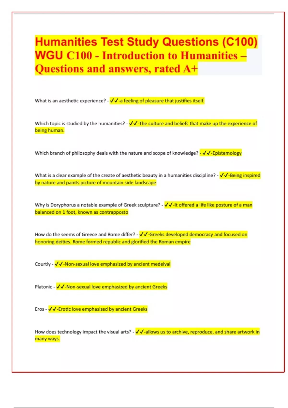 Humanities Test Study Questions (C100) WGU C100 - Introduction to Humanities – Questions and answers, rated A+ 2024