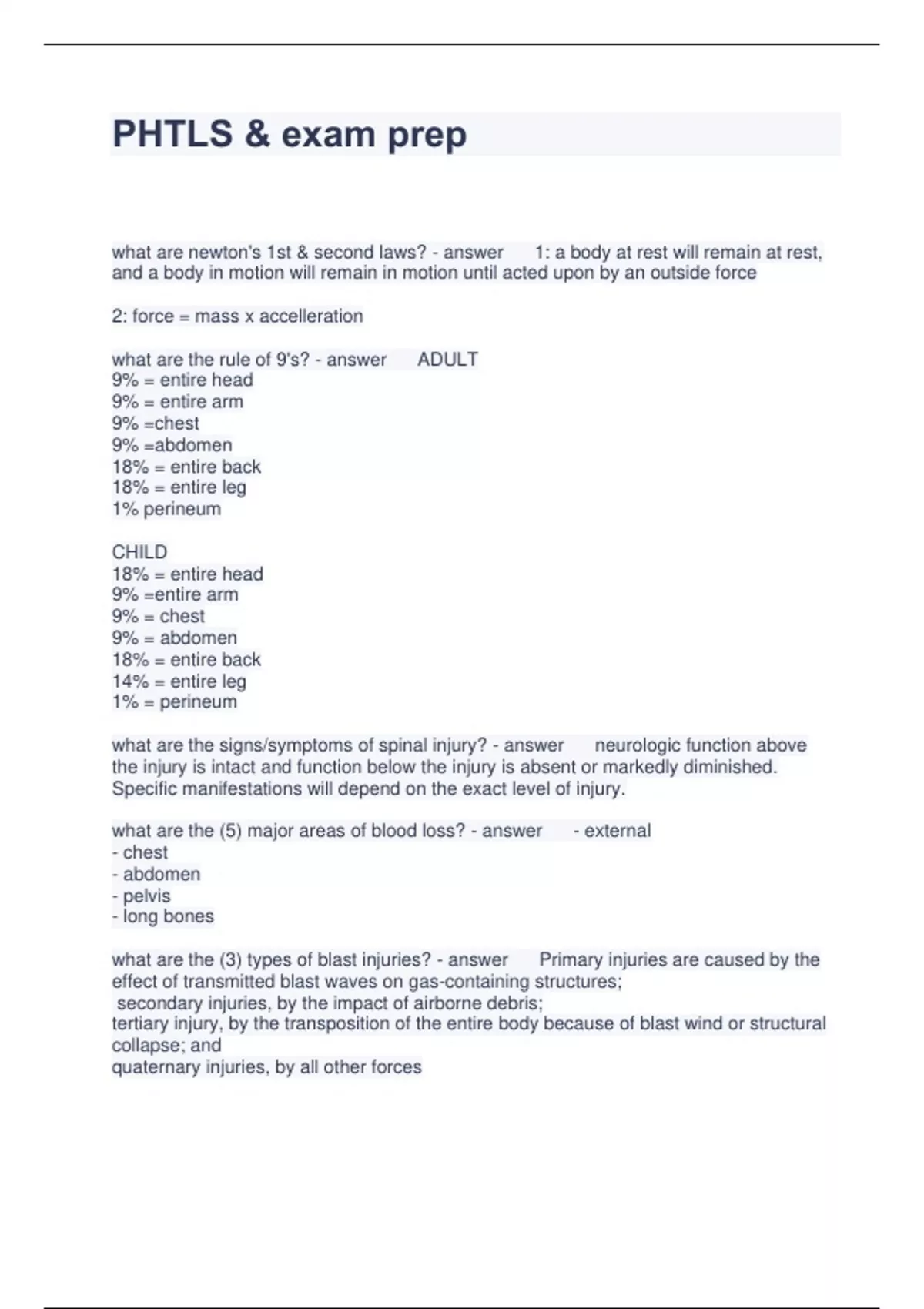 Exam of 9 pages for the course PHTLS at PHTLS (PHTLS & exam prep)