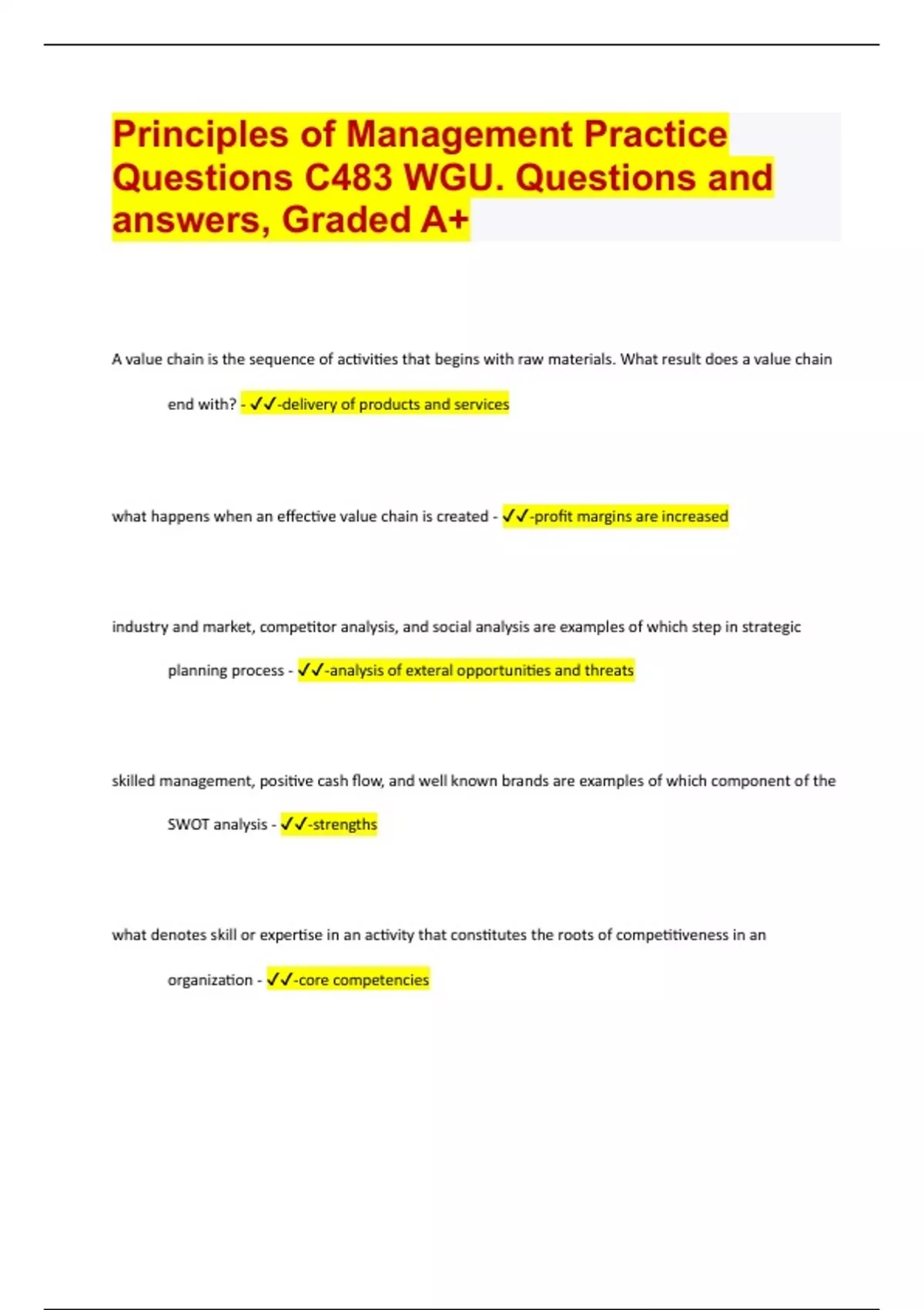 Principles of Management Practice Questions C483 WGU. Questions and answers, Graded A+ 2024