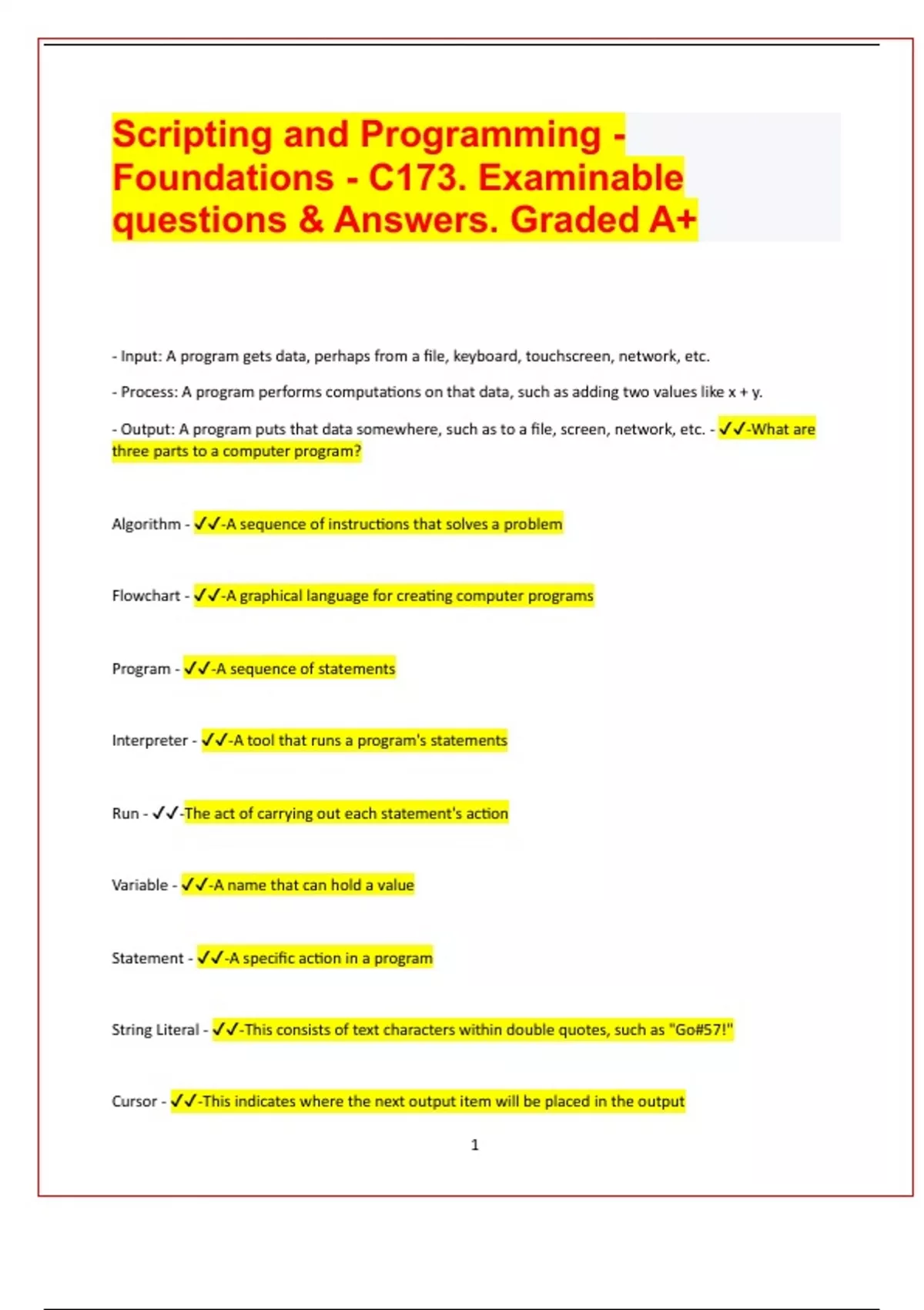 Scripting and Programming - Foundations - C173. Examinable questions & Answers. Graded A+ 2024