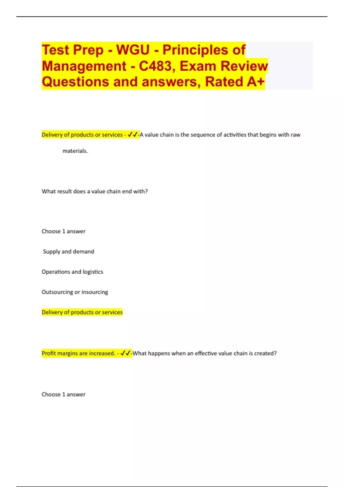 test prep wgu principles of management c483